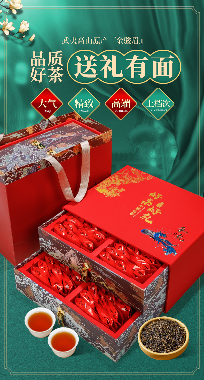 非常满意这次购物体验!首先,包装非常精美,作为节日送礼的选择,这款金骏眉红茶礼盒绝对能够彰显心意与档次。打开礼盒的瞬间,就被那浓郁的茶香所吸引,真是让人心情大好。茶叶的色泽乌润油亮,条形紧结,一看就知是高品质的好茶。 泡上一壶,茶汤金黄透亮,清澈见底,入口甘爽醇厚,回甘悠长,每一口都是对味蕾的极致宠溺。不仅自己品尝时享受到了茶文化的魅力,送给亲戚领导长辈朋友时,也得到了他们的一致好评,纷纷夸赞茶叶味道正宗,包装也大气上档次。