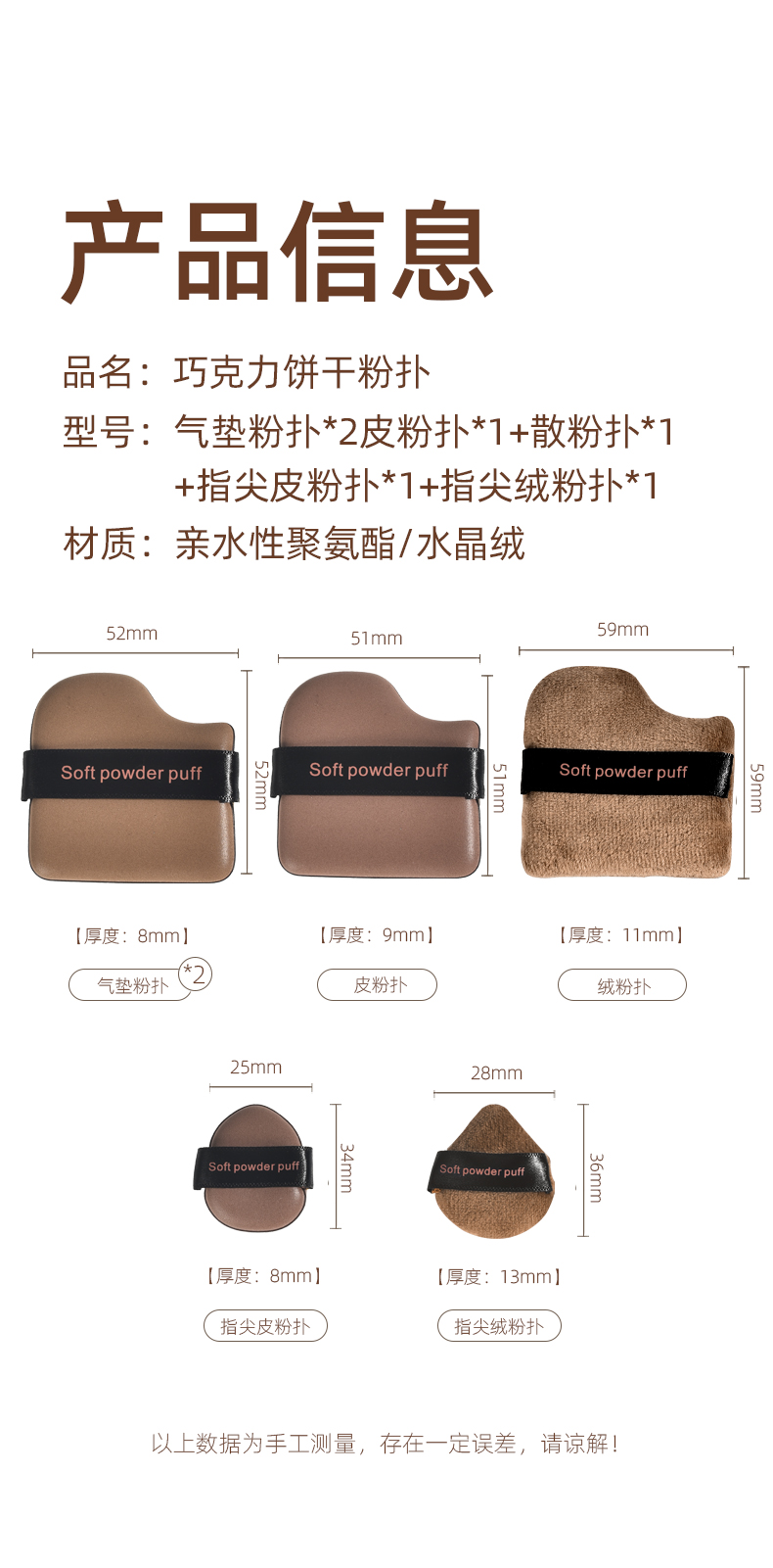 - ¥9.90气垫粉扑*2+皮粉扑*1+散粉扑*1+指尖皮粉扑*1+指尖绒粉扑*1