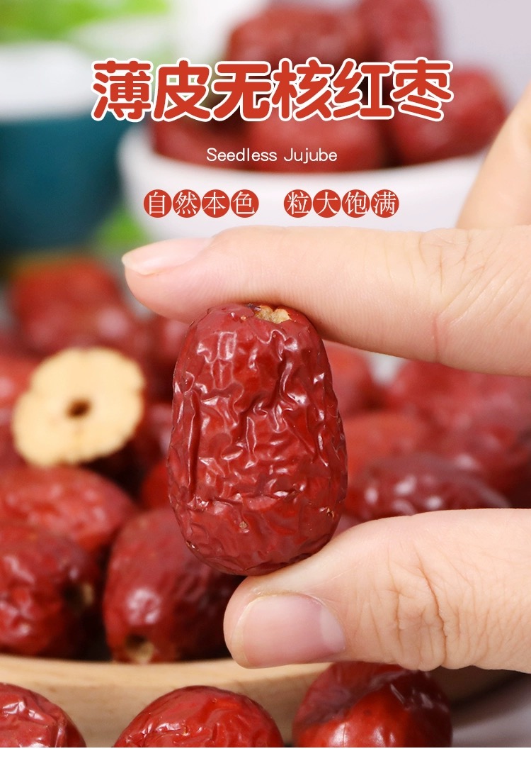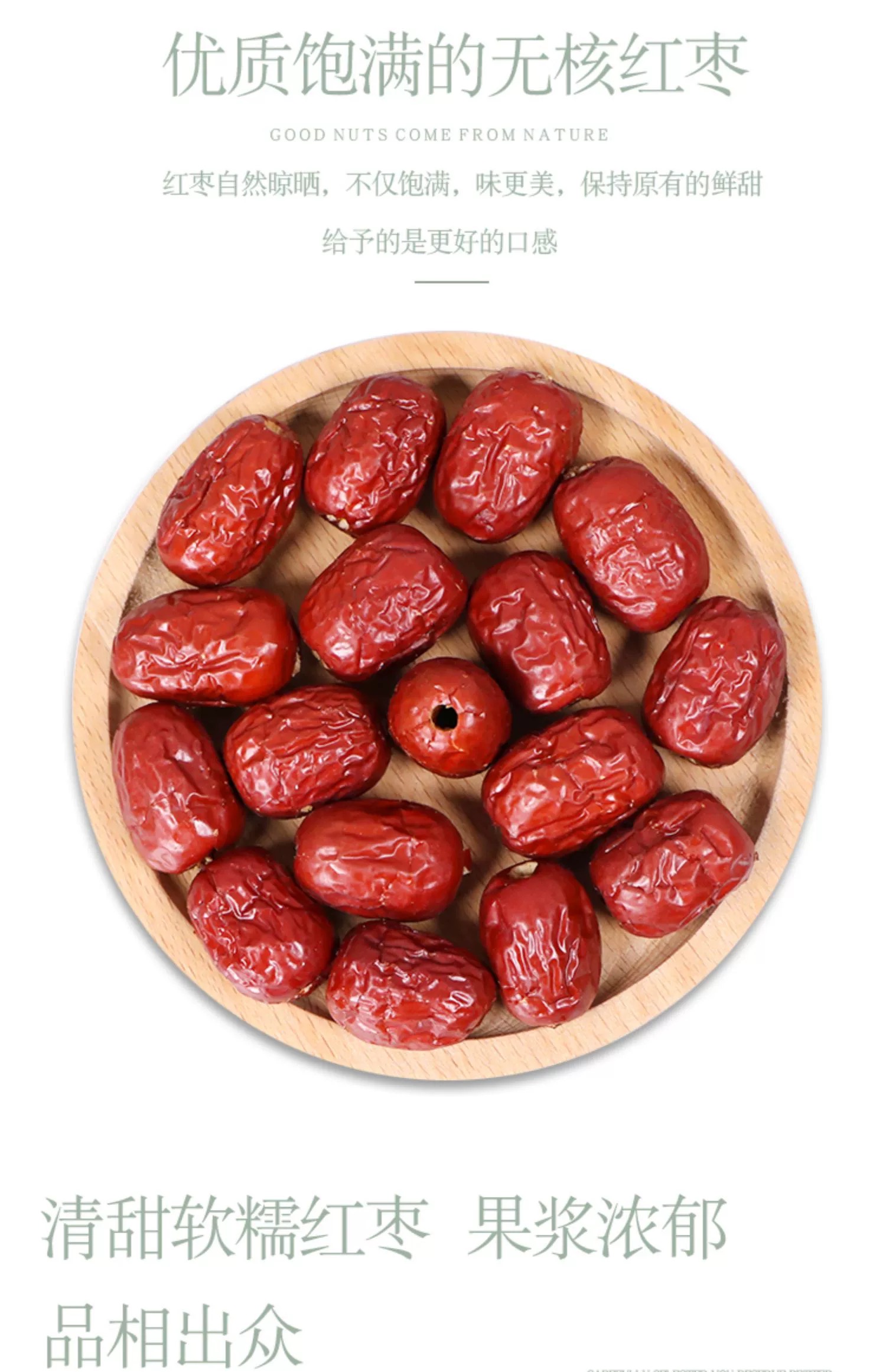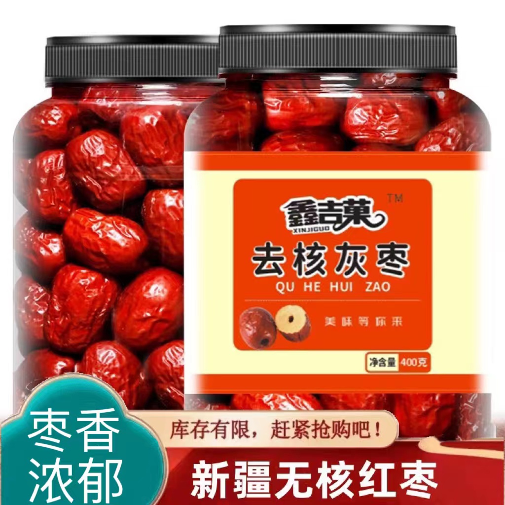 无核红枣新疆红枣无核打豆浆奶枣若羌枣400g零食煲汤空心枣yy