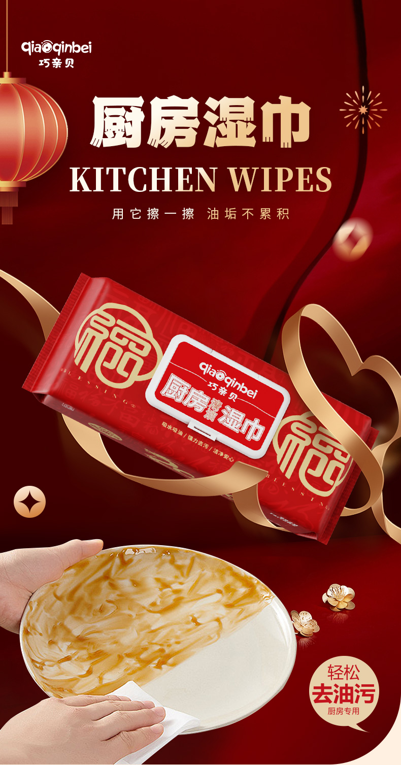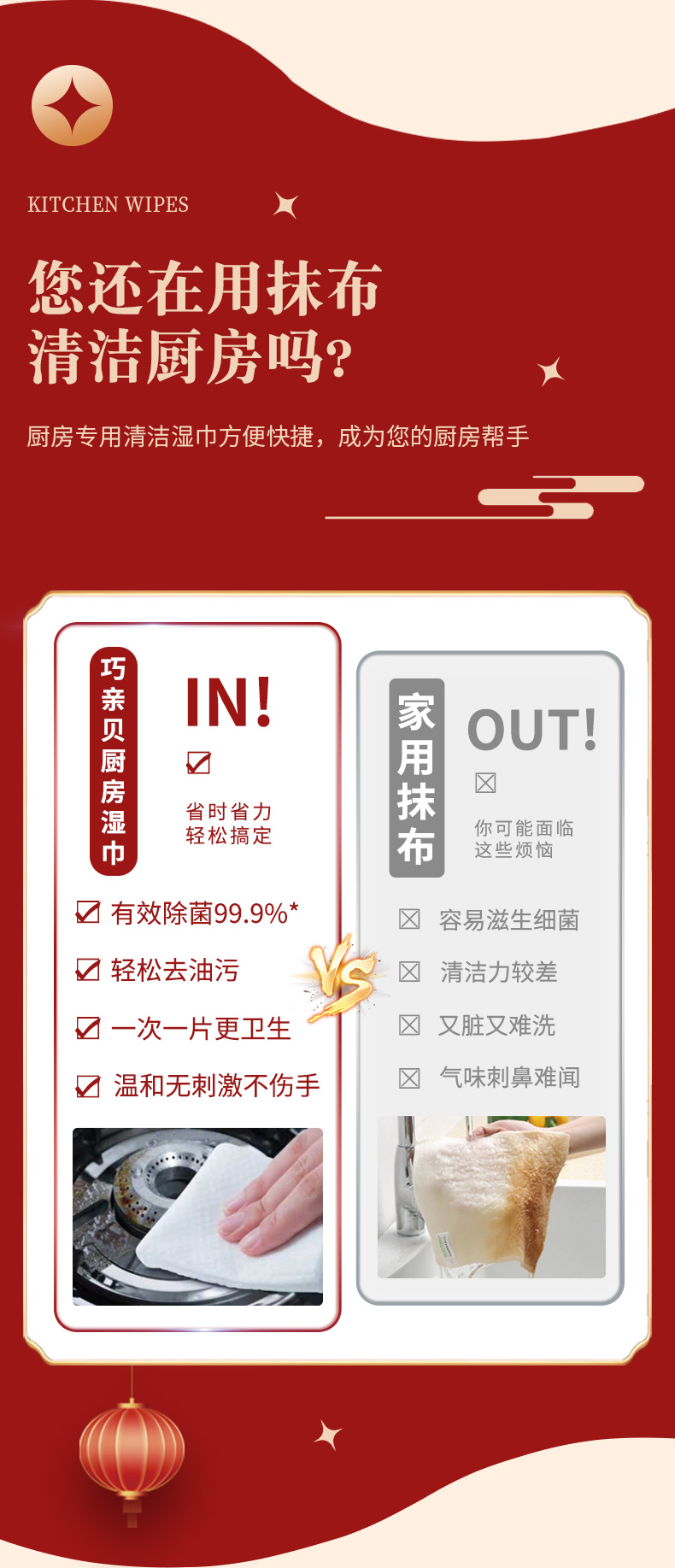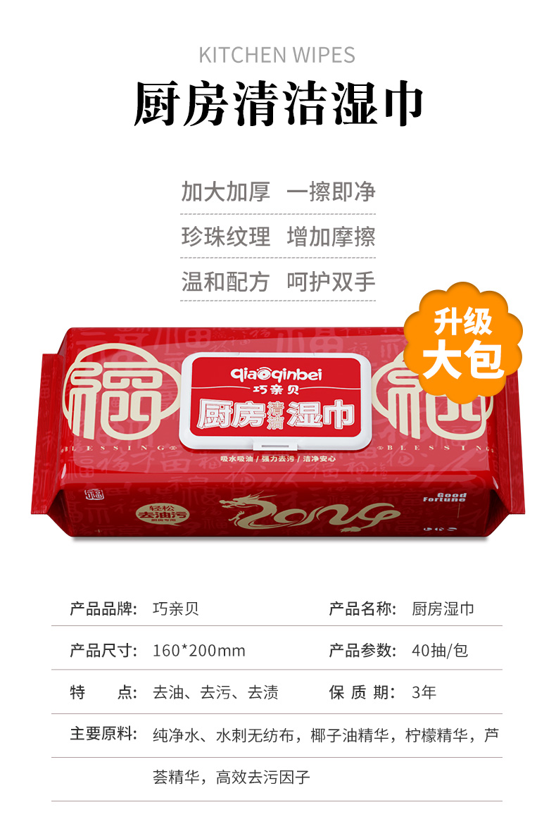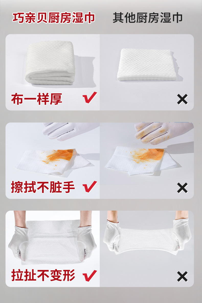 三单 五单屯 【巧亲贝厨房湿巾八包装】清洁重油污渍一次性L2