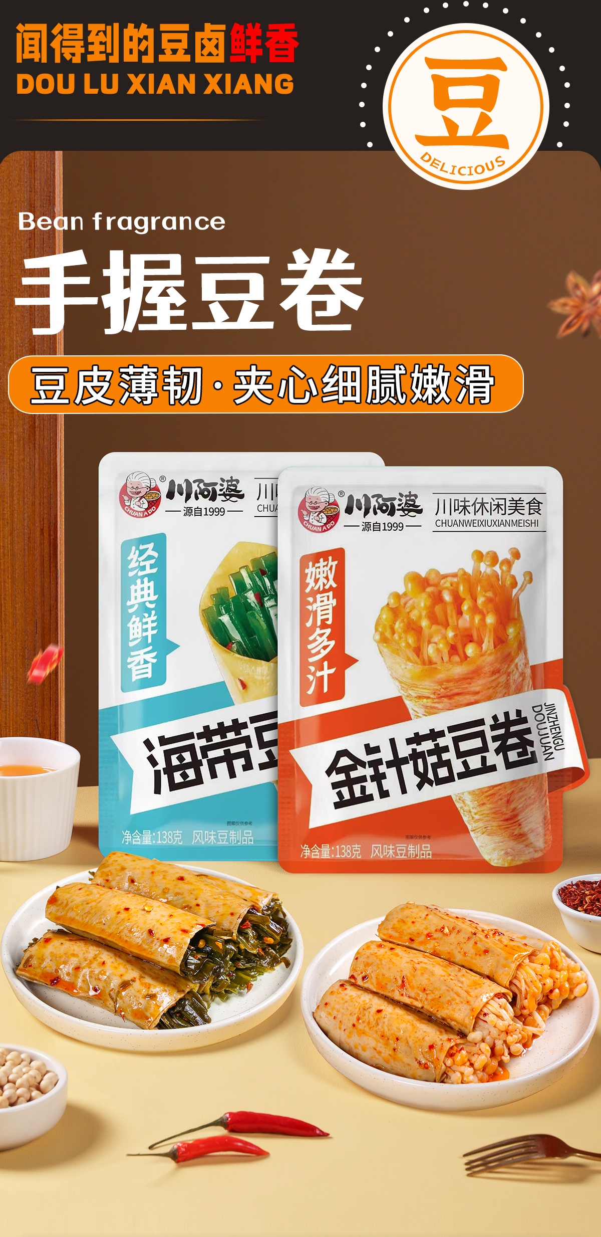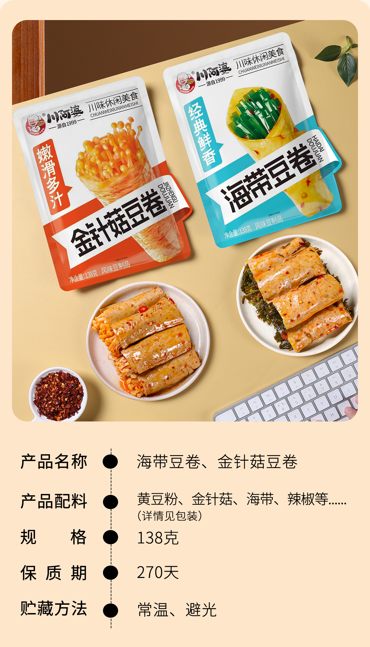 - ¥22.80海带豆卷+金针菇豆卷【混合装】,四包正装138g*4袋