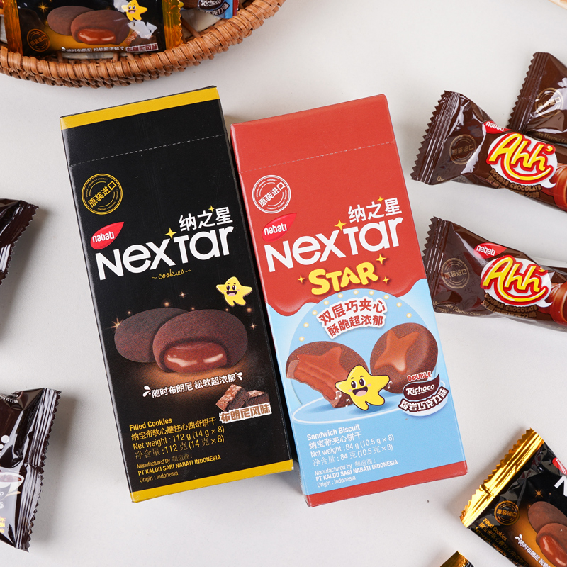 - ¥12.80布朗尼8包+熔岩巧克力8包+威化饼干4包【共20包】,8g