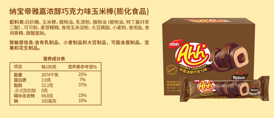- ¥31.80布朗尼16包+玉米棒20根+夹心饼干3包+熔岩巧克力16包+威化饼干5包【共60包】,8g