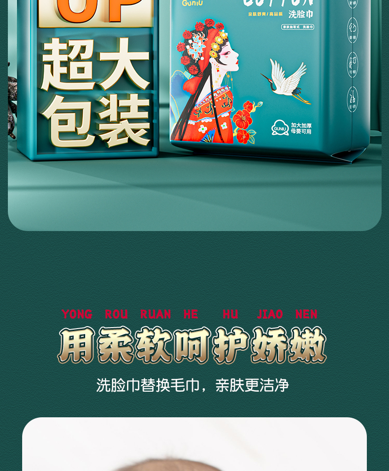 固牛暑假期亲肤悬挂式大容量珍珠纹的洗脸巾棉柔巾高品质母婴可用