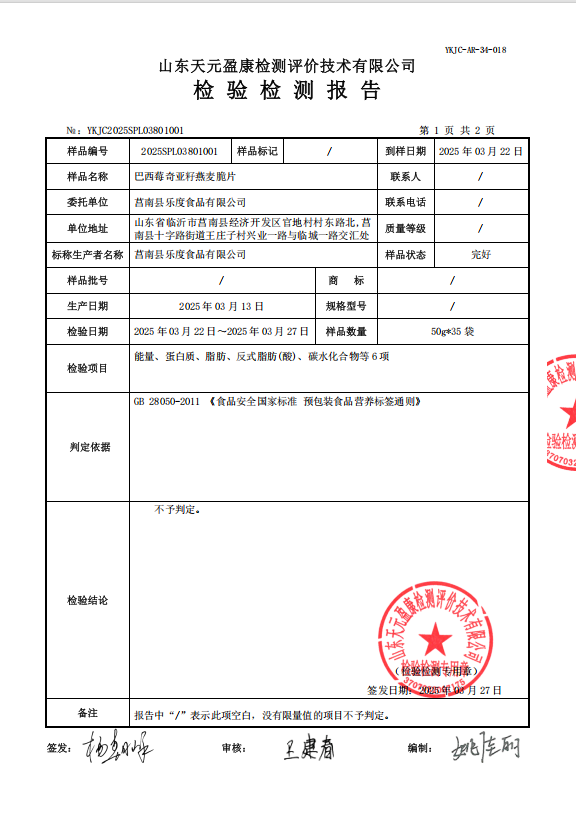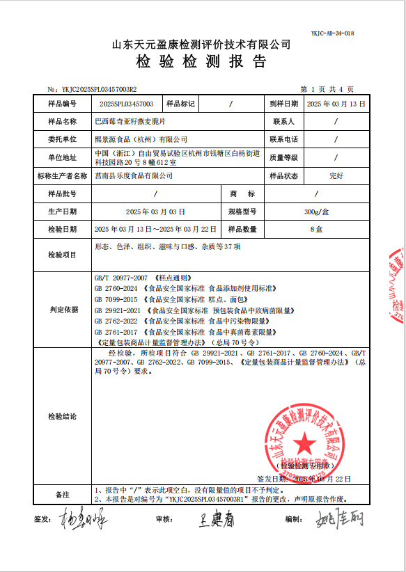 标题:健康美味,性价比超高的熙景源巴西莓奇亚籽燕麦脆片! 评论内容: