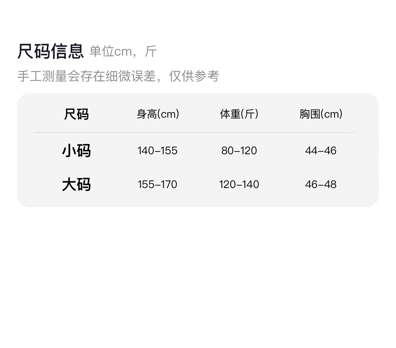 - ¥39.99安可拉红,大码(L 120-140斤)