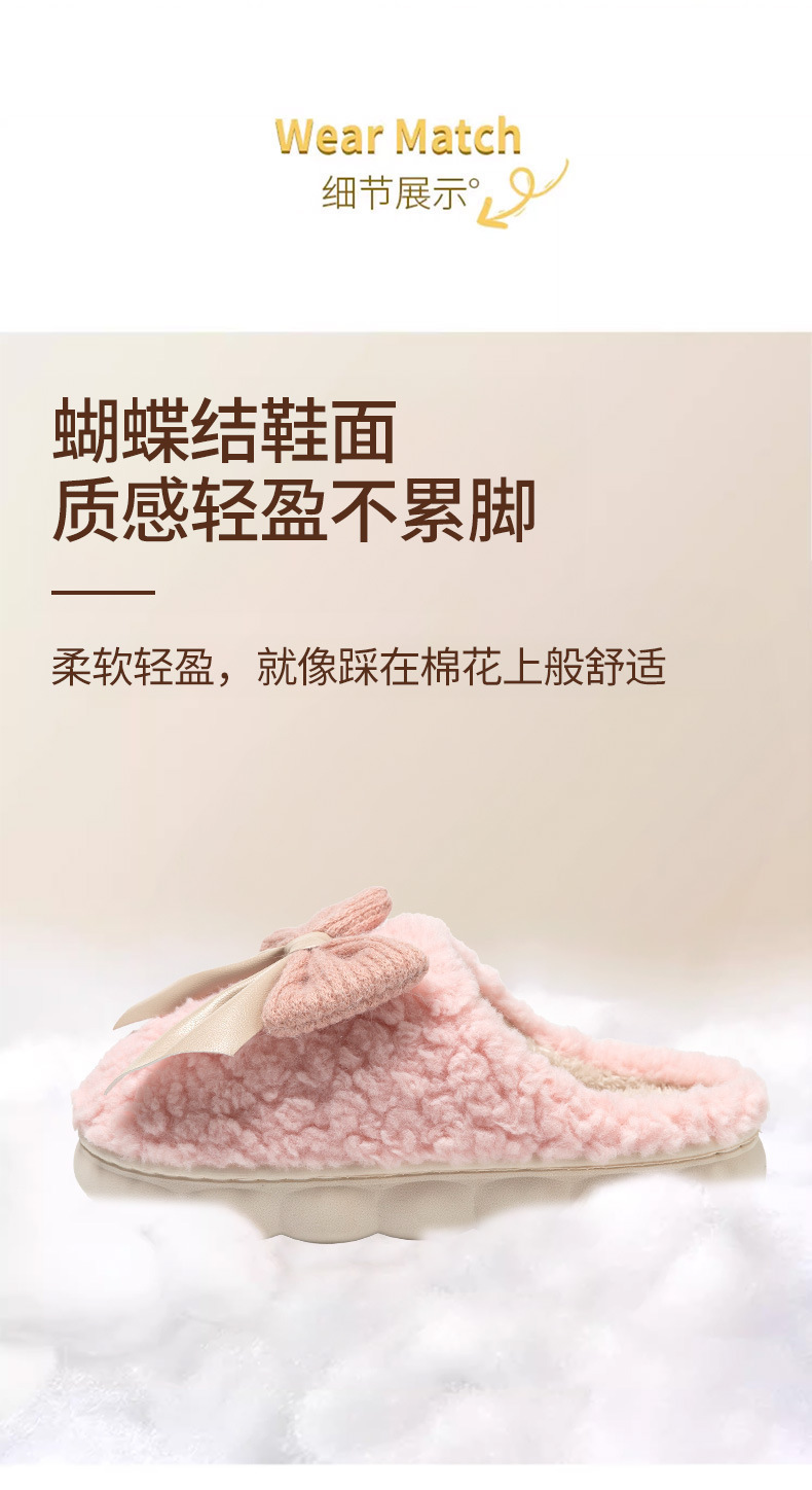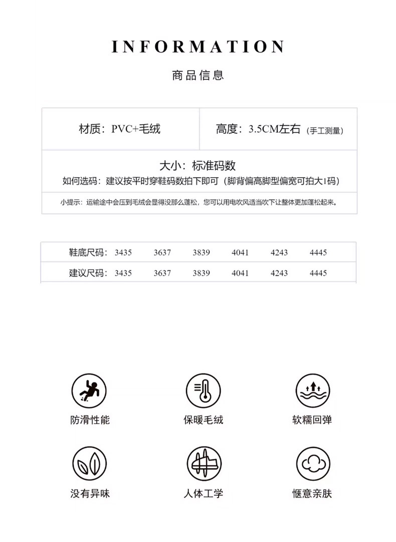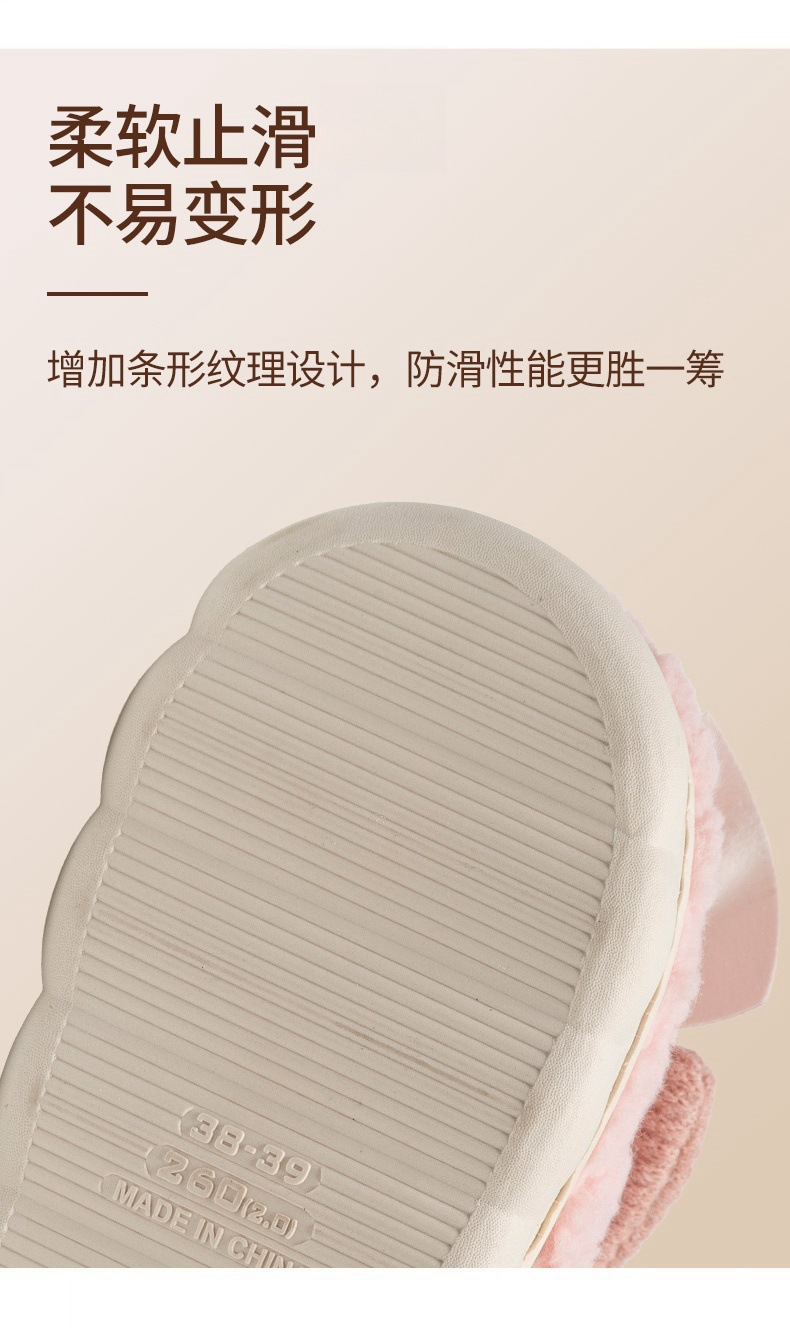 材质方面,毛绒绒的内里柔软又保暖,即使在寒冷的冬天,双脚也能感受到温暖如春。而且,外面的防滑设计也非常实用,无论是在光滑的瓷砖上还是木质地板上,都能稳稳当当,再也不用担心滑倒的问题了。