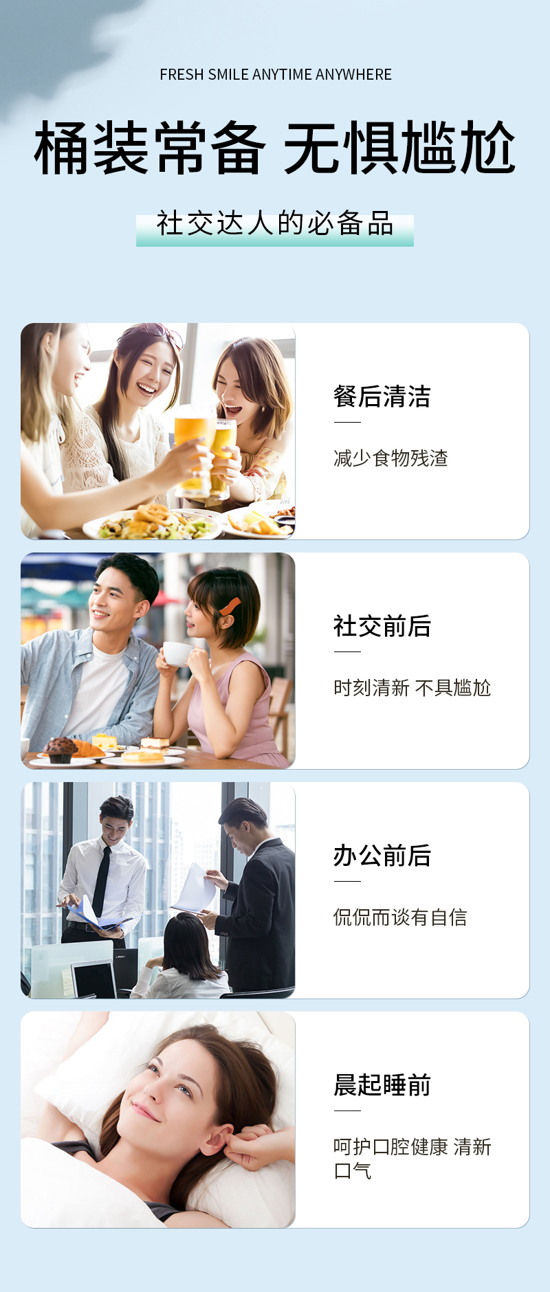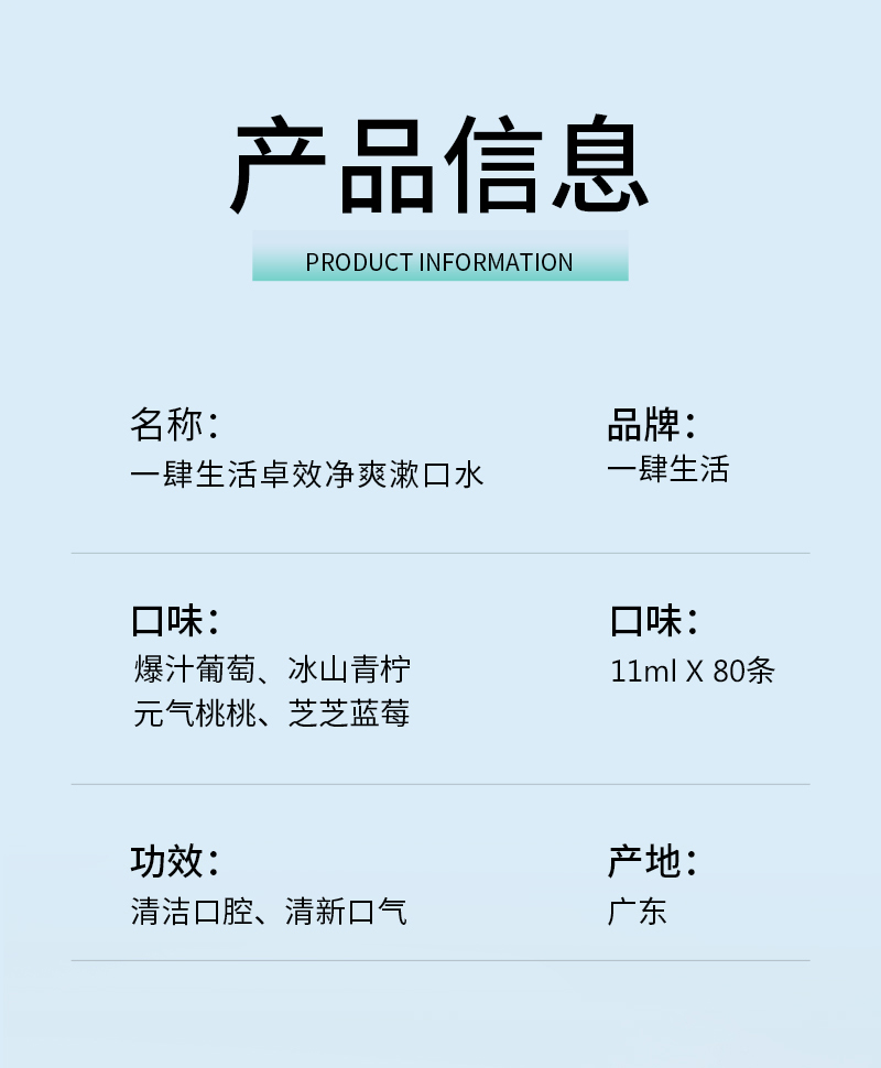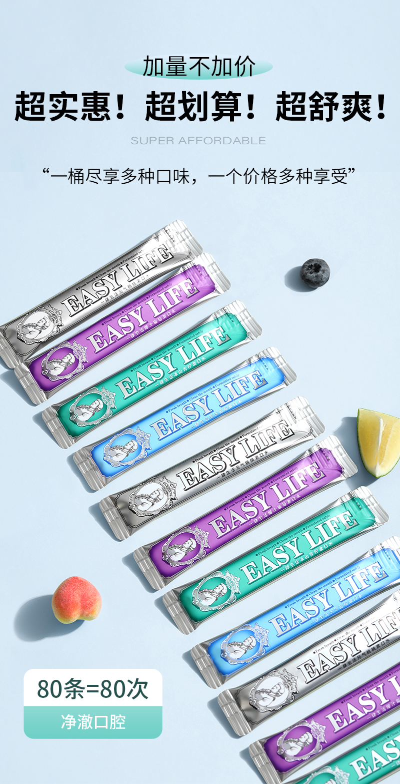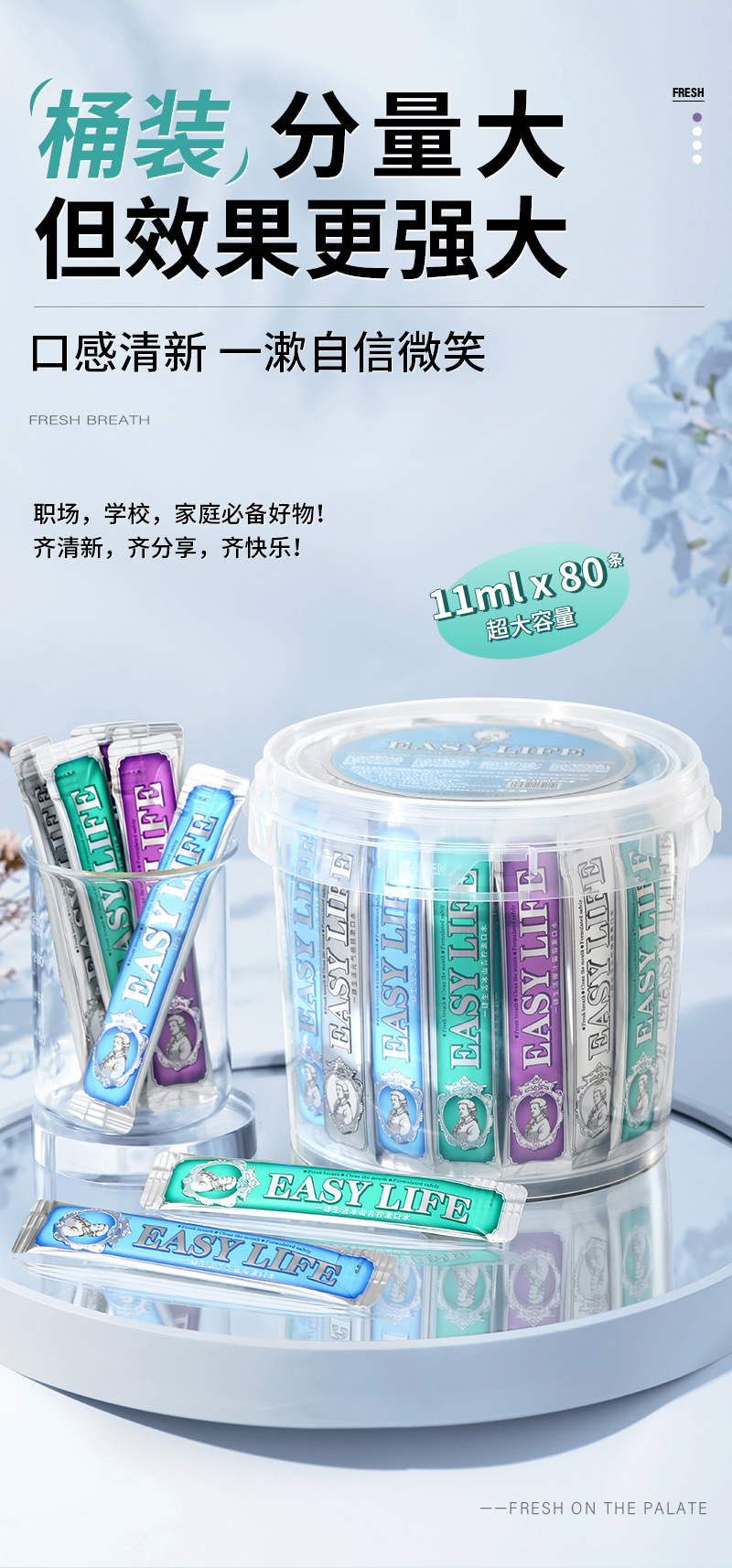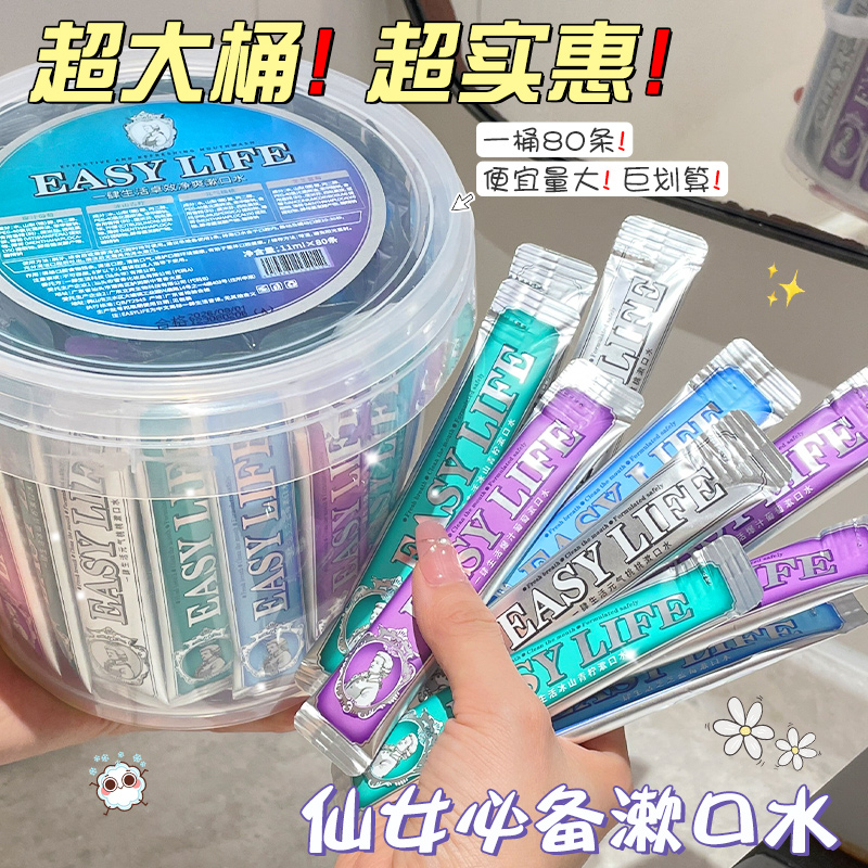 非常满意这次的购物体验!首先,到手就是满满的80条漱口水,性价比超高,感觉可以用上好一阵子了,特别适合我这种经常出差或者外出旅游的人。 一桶里面包含了四种不同的味道,每天都能换新口味,既新鲜又有趣。每个漱口水都是独立包装,携带超级方便,无论是放在包包里还是行李箱中都不占地方,随时随地都能保持口腔清新。 使用感受方面,这款鲜果漱口水味道真的很赞,每一种味道都像是刚吃完新鲜水果一样,清新自然,没有刺激感,留香也很持久。漱口后口腔感觉非常清爽,连呼吸都似乎带着果香,让人心情愉悦