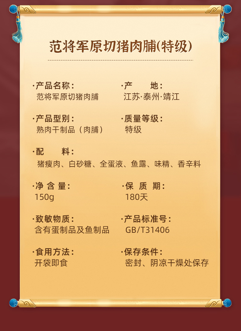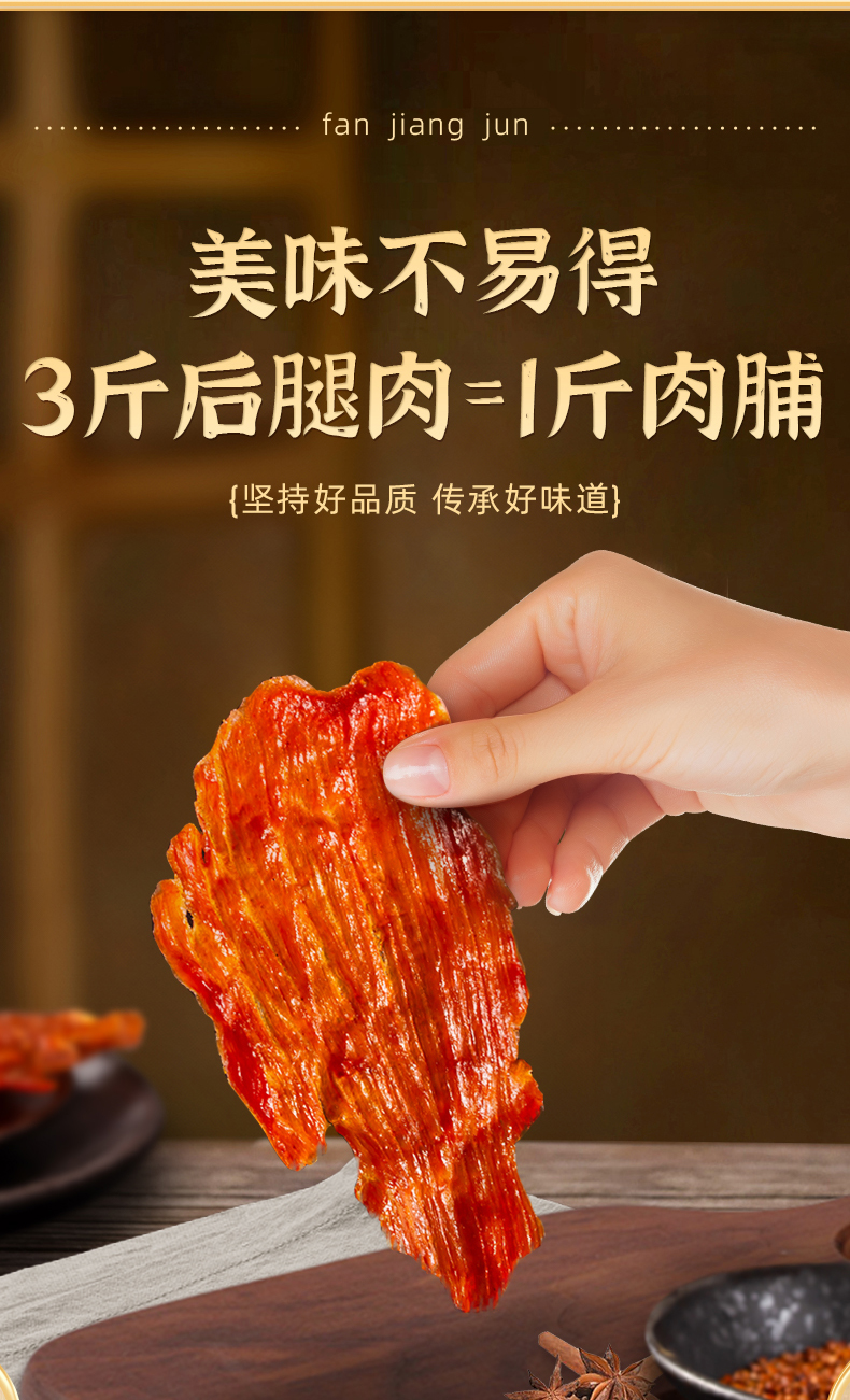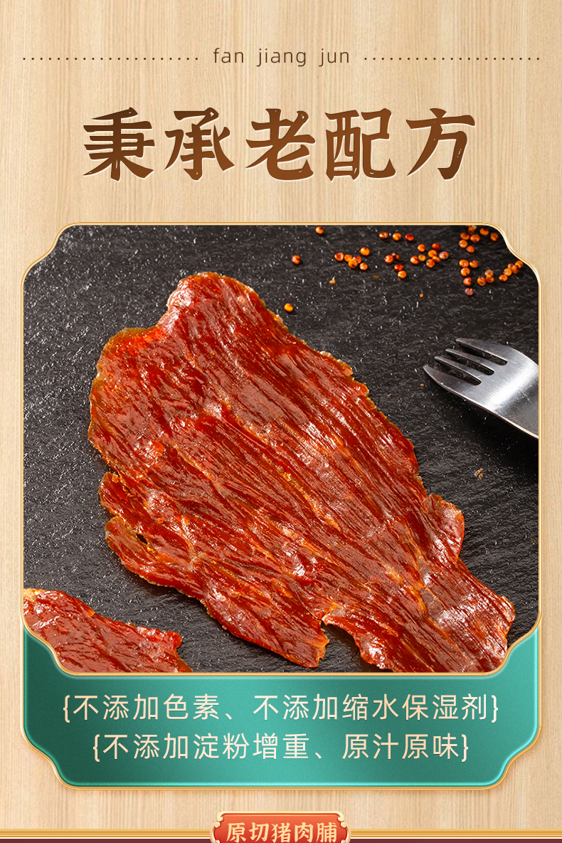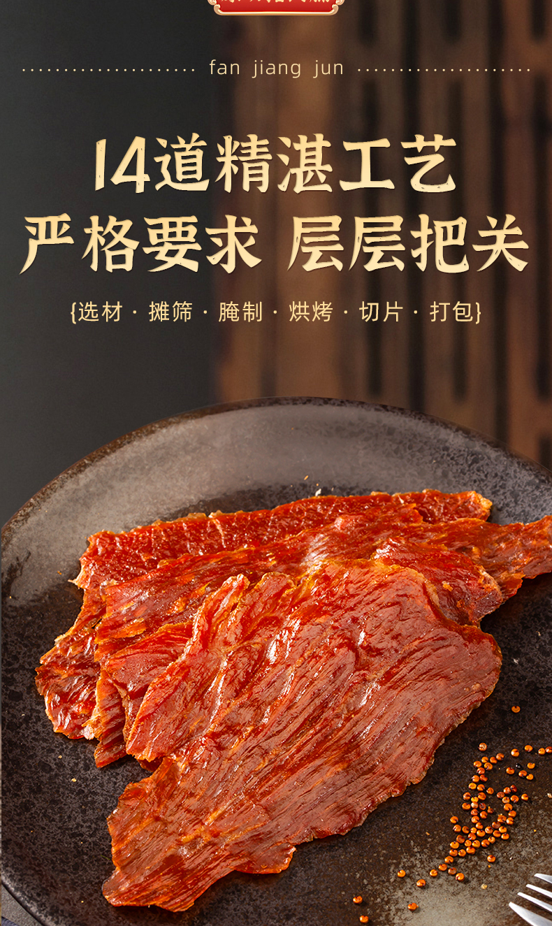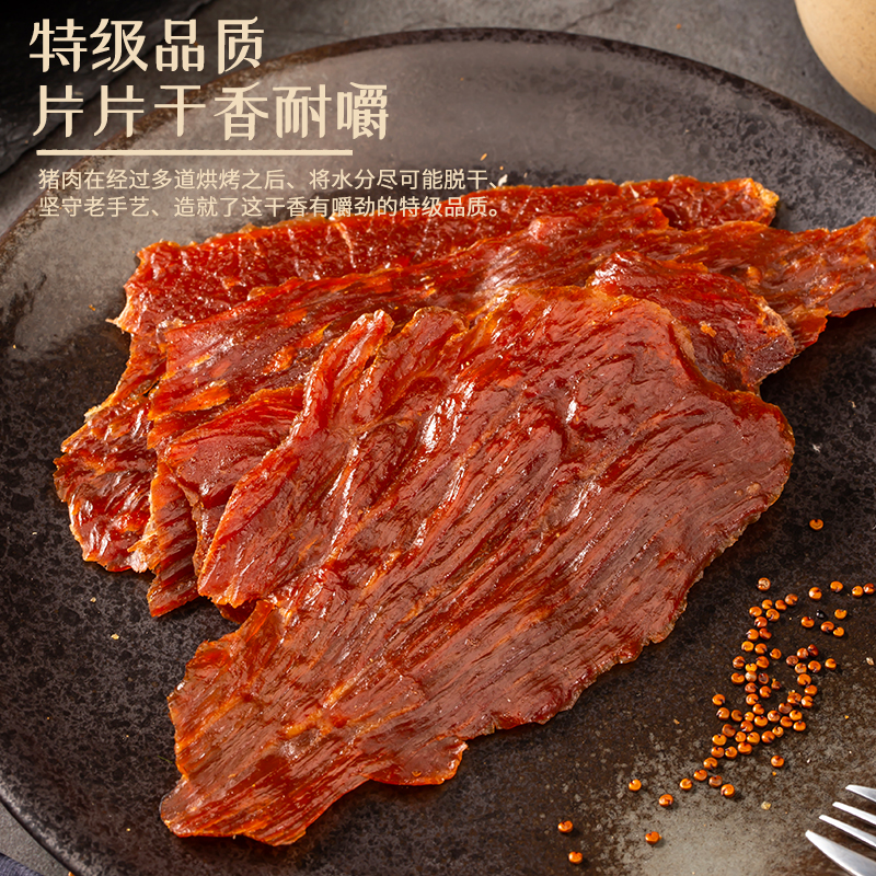 非常满意这次在贵店购买的范将军原切纯猪肉脯干!首先,包装精美,三层盒装设计既方便携带又保证了产品的密封性,收到时还非常新鲜,没有丝毫的受潮或变质迹象,这点真的很让人放心。
