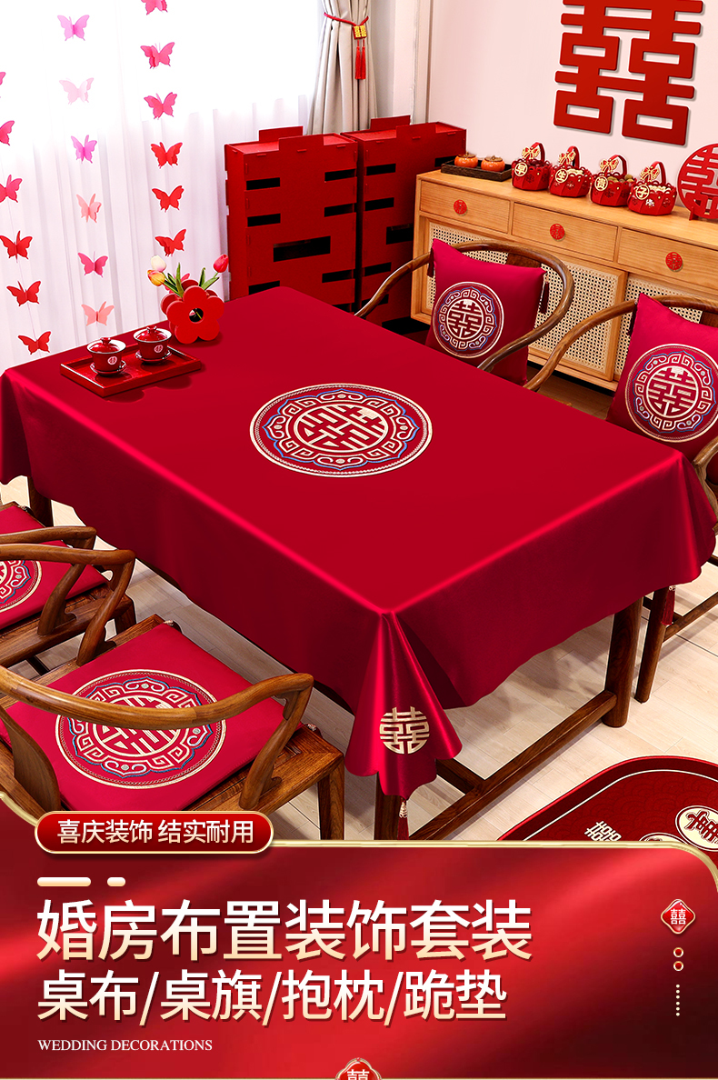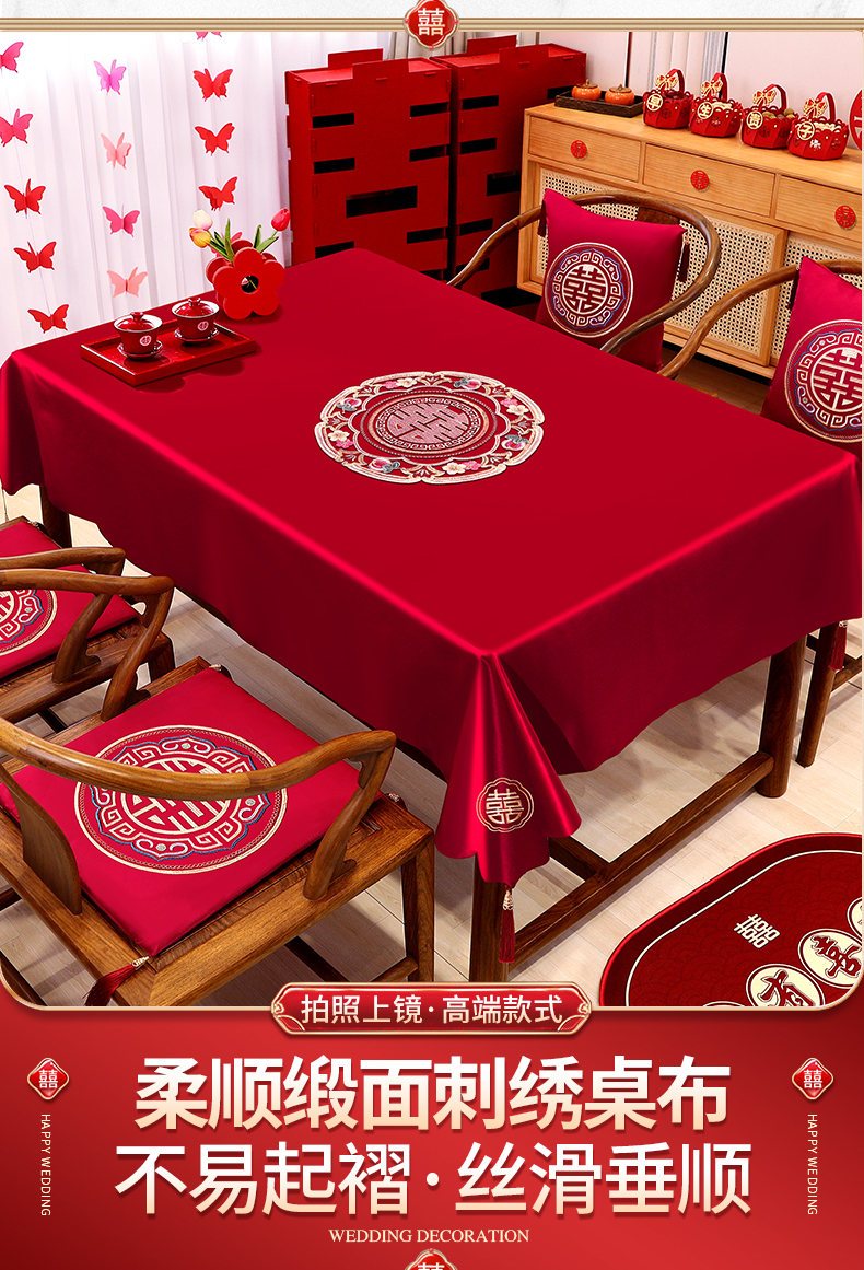 - ¥42.001张桌布【吾家有喜流苏吊坠款·约1.76*1.23米】加厚贡缎刺绣