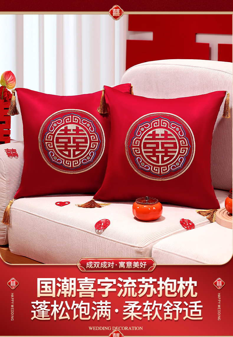 - ¥32.801个靠/抱枕【喜上加喜·约42cm】加厚高回弹流苏款