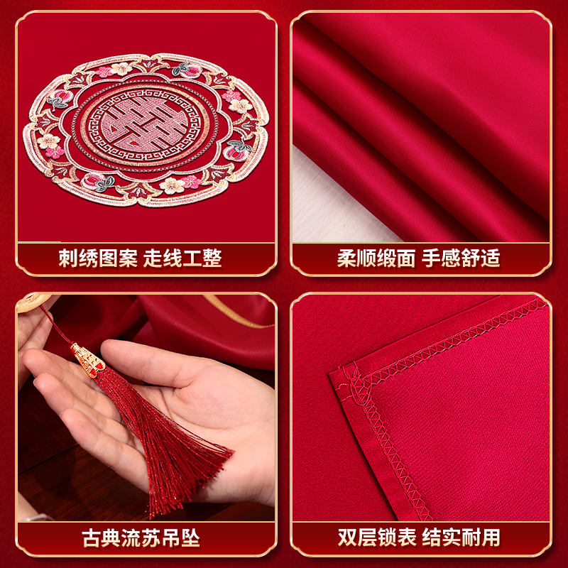 - ¥42.001张桌布【喜结良缘流苏吊坠款·约1.76*1.23米】加厚贡缎刺绣