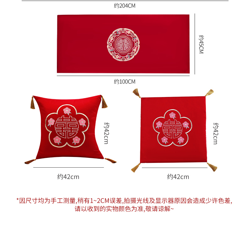 - ¥36.001张床头布【花边双囍·约80*180cm】加厚锦缎刺绣