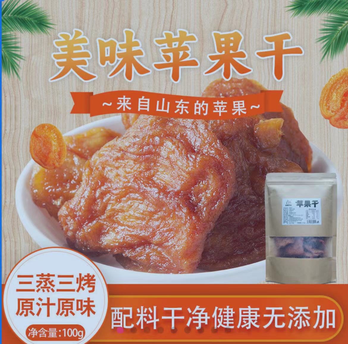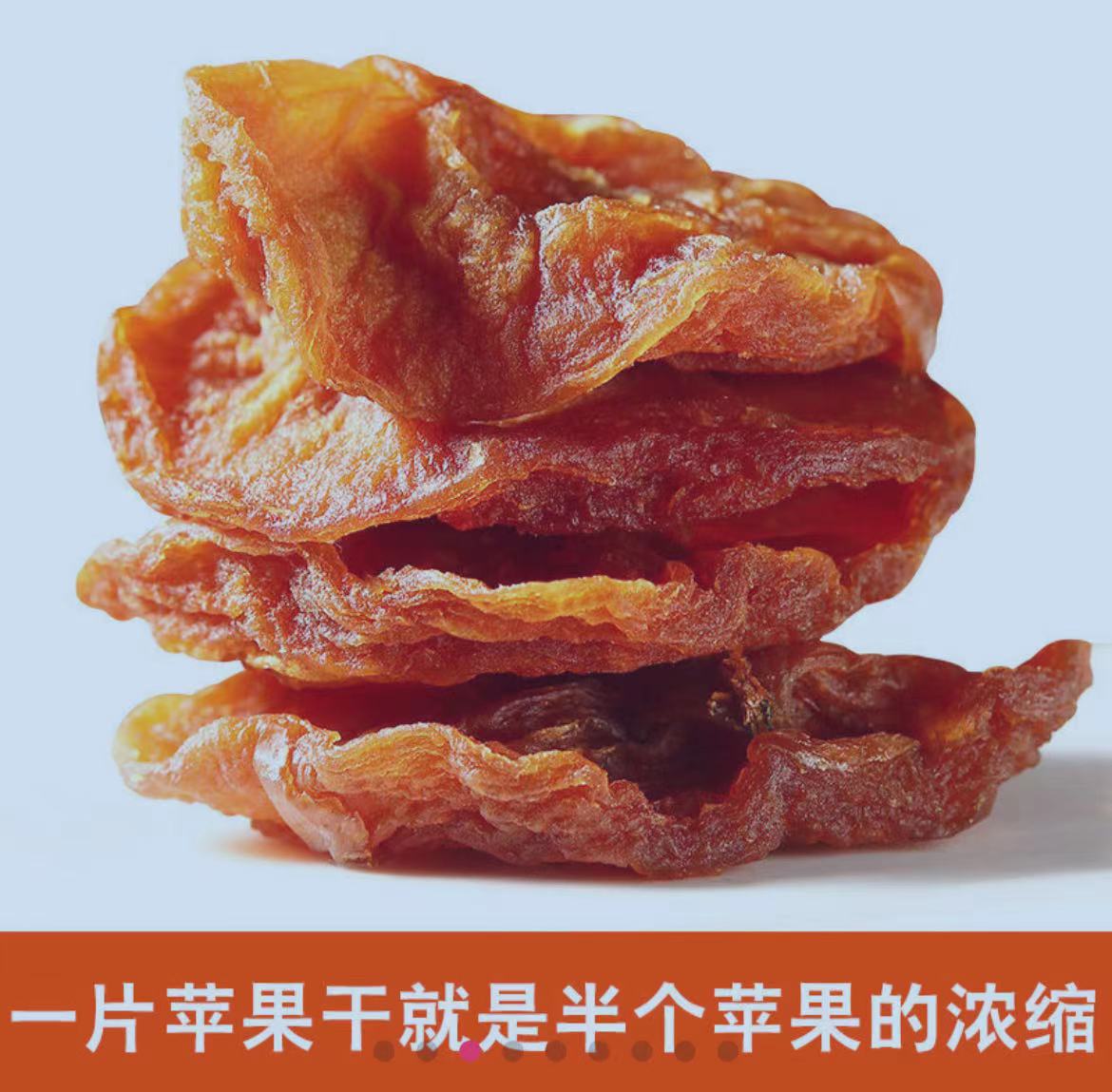 独特的口感:苹果干保留了苹果的酸甜风味,原材料采用烟台一级红富士 适合喜欢果味酸甜的消费者,健康零食:相比其他加工零食,苹果干不添加额外的糖分和人工添加剂,是一种更健康的零食选择。