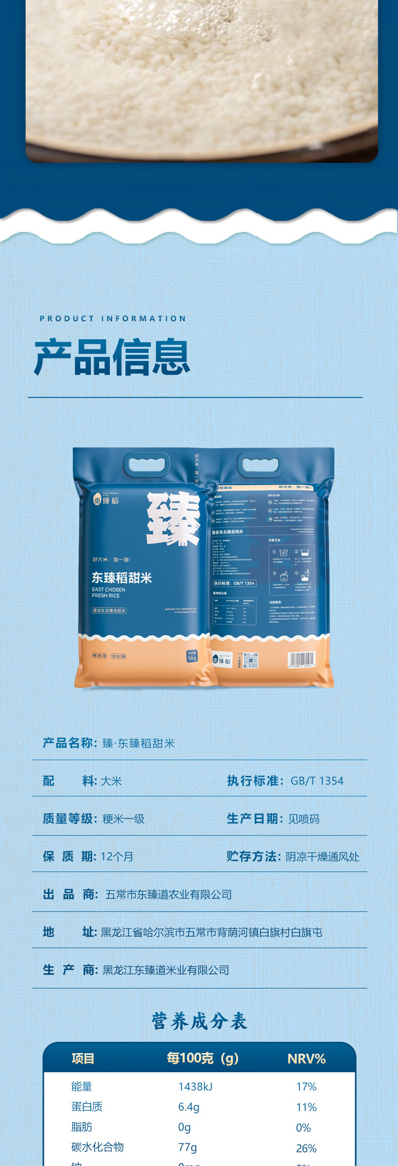 - ¥78.80 臻·东臻稻甜米5kg*1袋