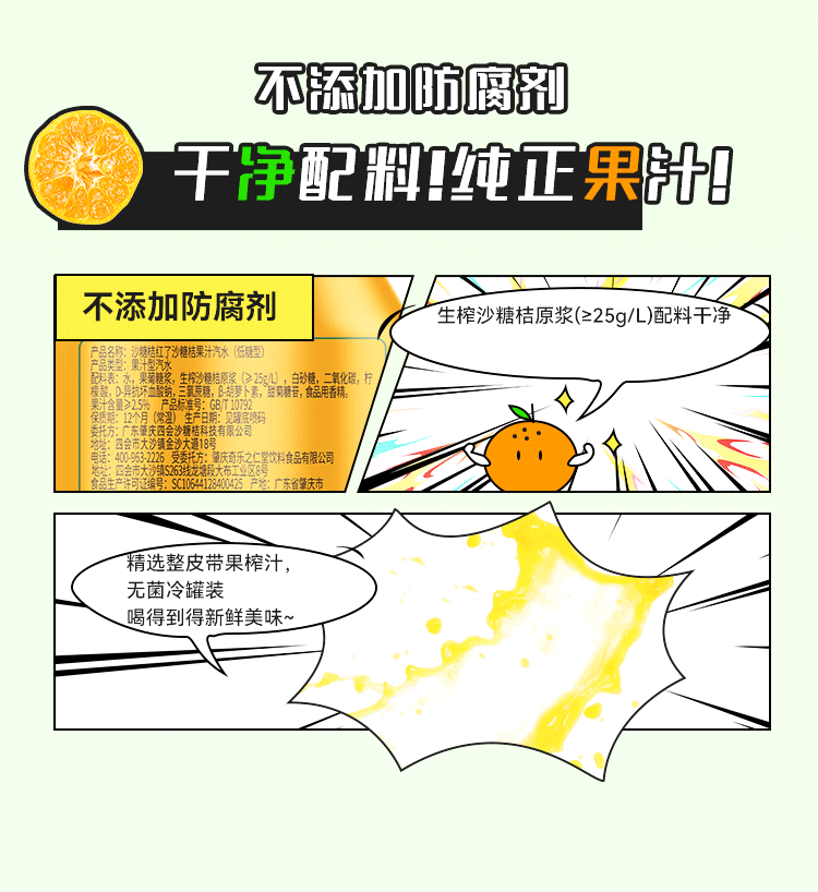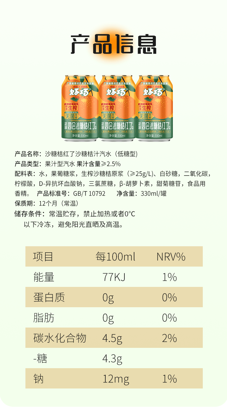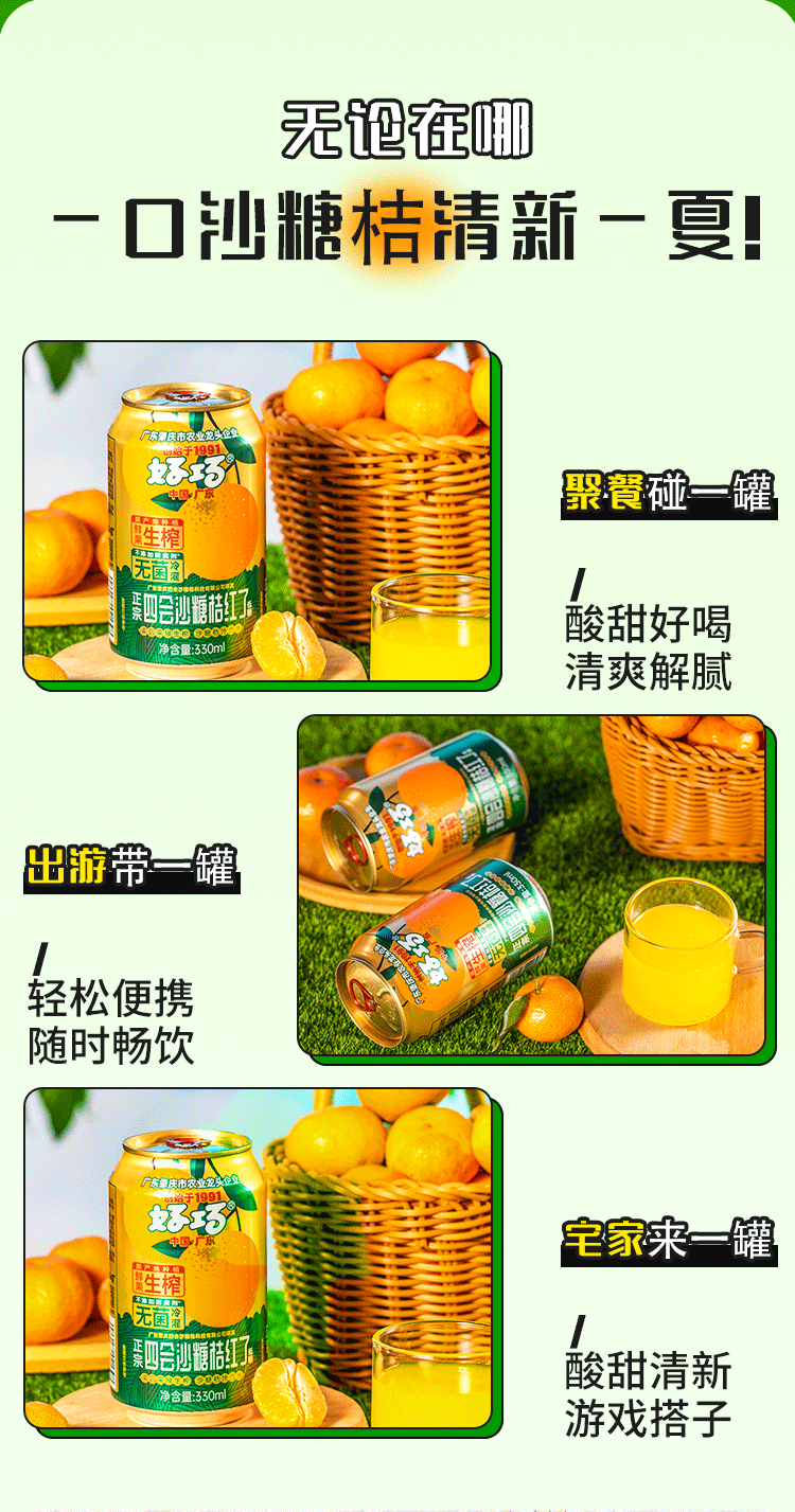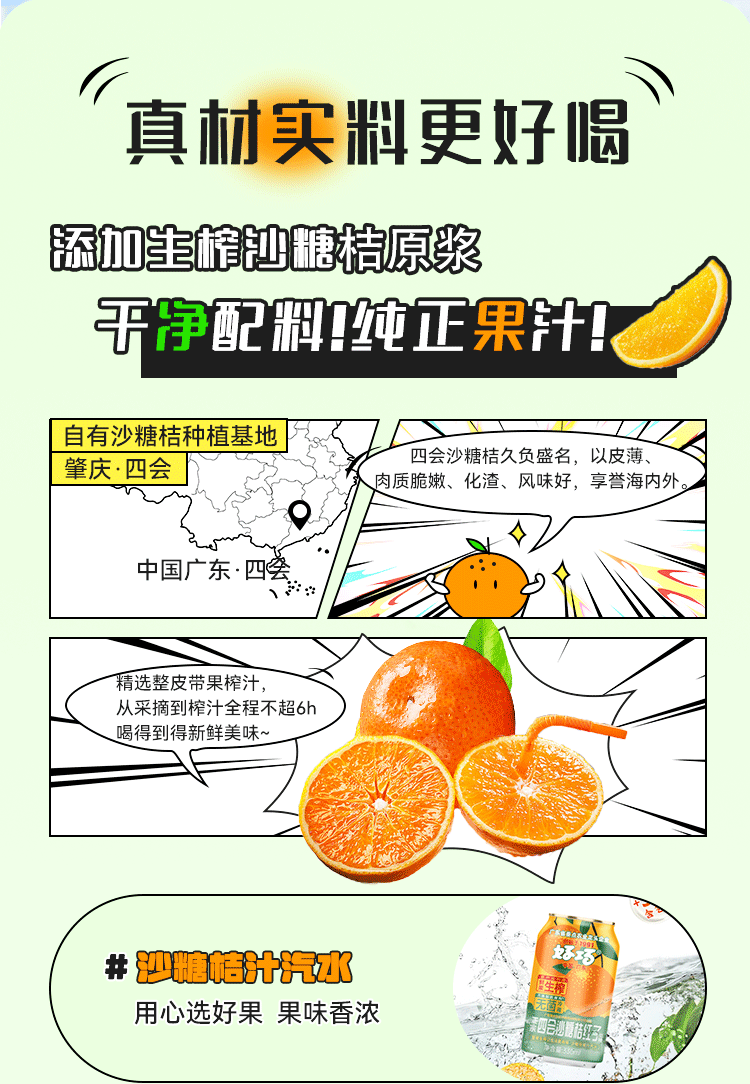 【夏日特惠】好巧生榨沙糖桔汽水330ml*6罐低糖桔汁经典碳酸饮料