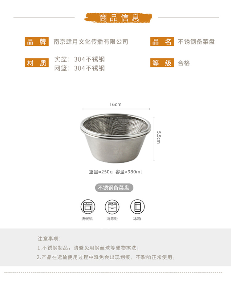 - ¥66.60 16cm小碗*2+16cm网篮*1【304不锈钢】