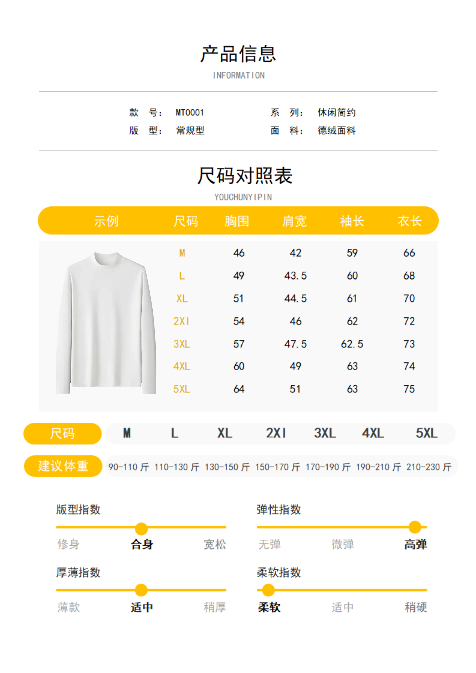 尺码非常准确,我按照店铺提供的尺码表选择了L码,穿上去刚刚好,既合身又显瘦。衣服的弹性也很好,即使动作幅度大也不会觉得紧绷。从M码到5XL码,各种身材的朋友都能找到适合自己的尺码,真的是非常贴心。