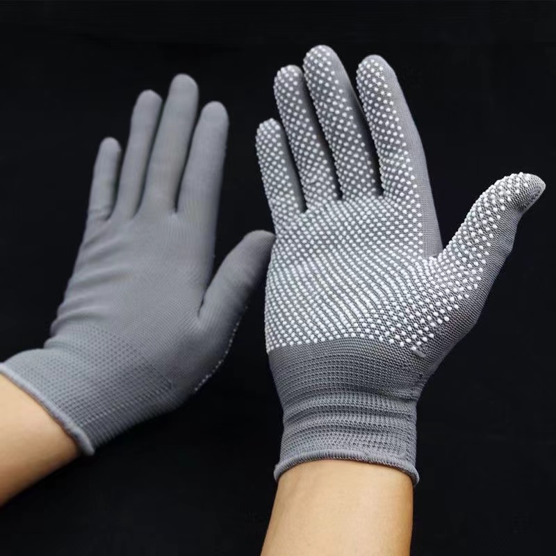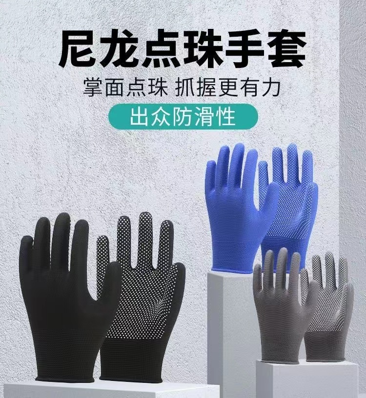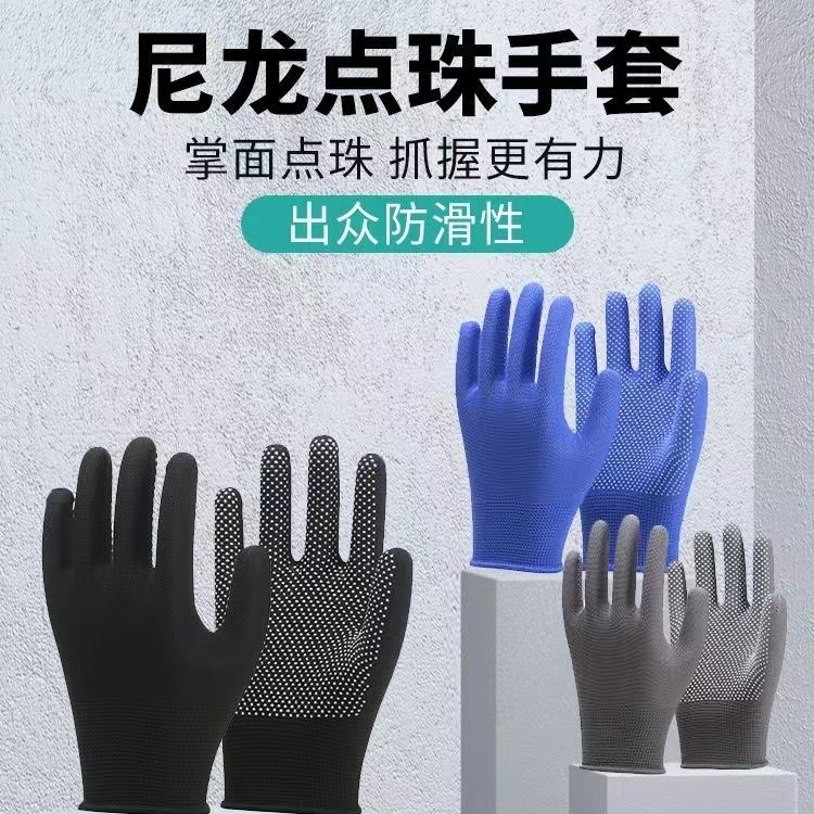 点胶劳保手套防滑尼龙线弹力透气点塑快递户外工作男女