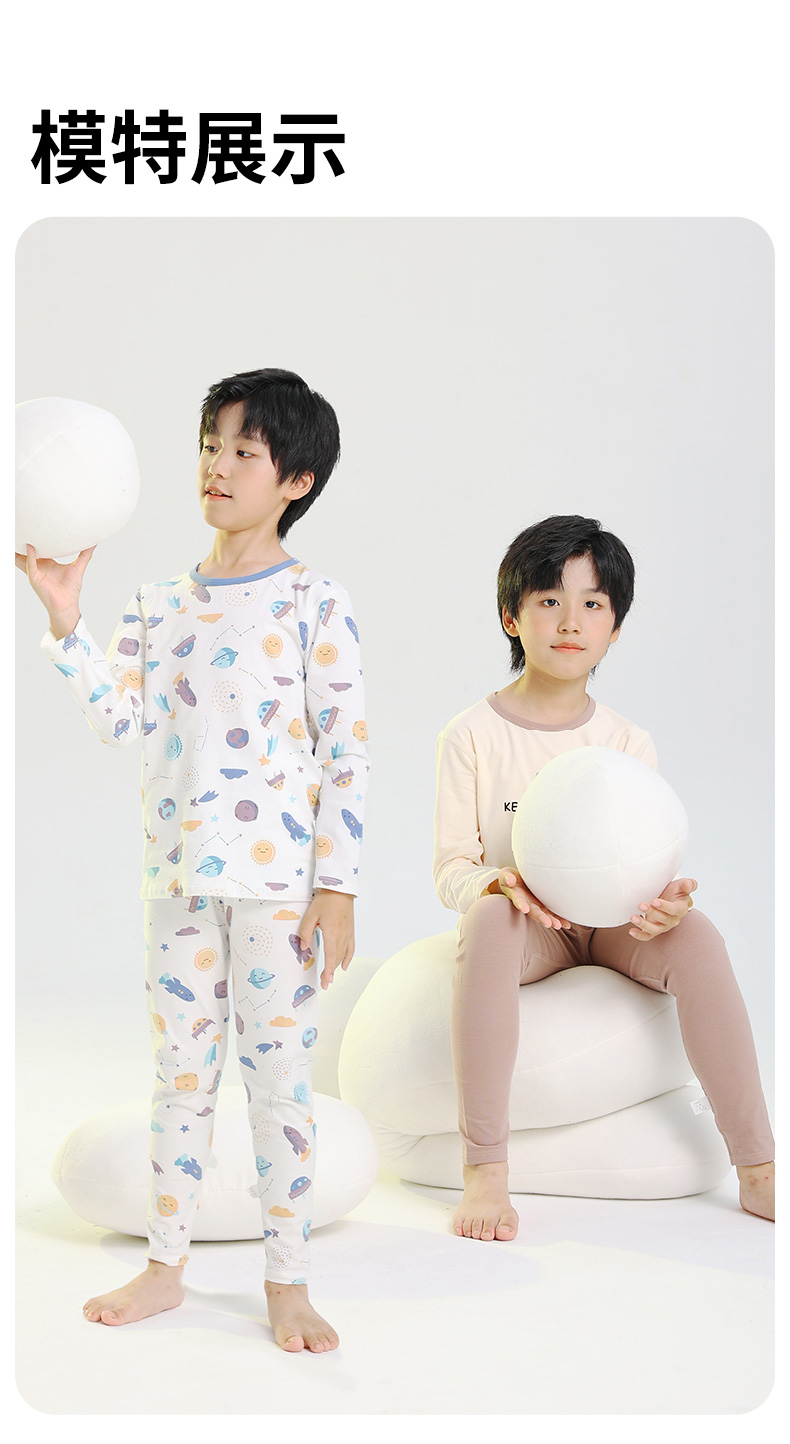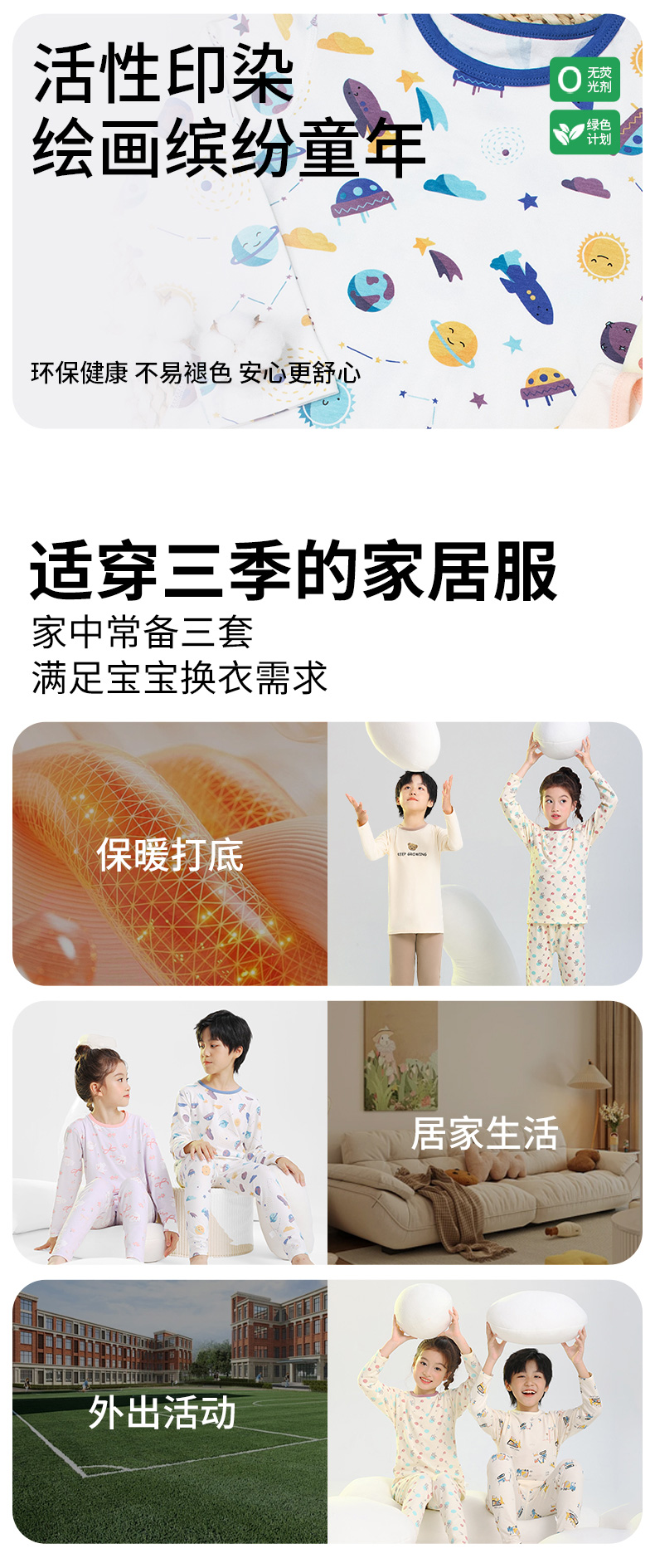 其次,款式设计得很可爱。我选了太空飞船+字母小熊的图案,孩子们非常喜欢。颜色搭配也很和谐,穿在身上既时尚又大方。而且,这种套装作为家居服也非常合适,孩子们在家里玩耍或者睡觉时穿着都很舒服。