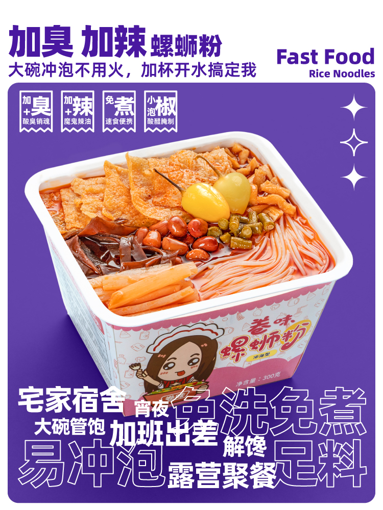 冲泡过程简单快捷,即便是忙碌的工作日也能轻松享受这一碗美味。粉质Q弹爽滑,吸饱了汤汁后更是入味三分,每一口都是满满的幸福感。特别是这款加辣加臭的版本,对于像我这样的重口味爱好者来说简直是福音,辣度适中且层次分明,臭味也恰到好处地提升了整碗粉的风味,让人欲罢不能。