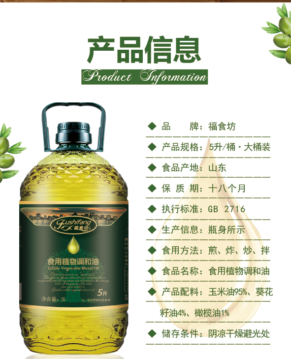 【5L大桶装】添加橄榄油食用油5升家用炒菜油玉米葵花籽油调和油