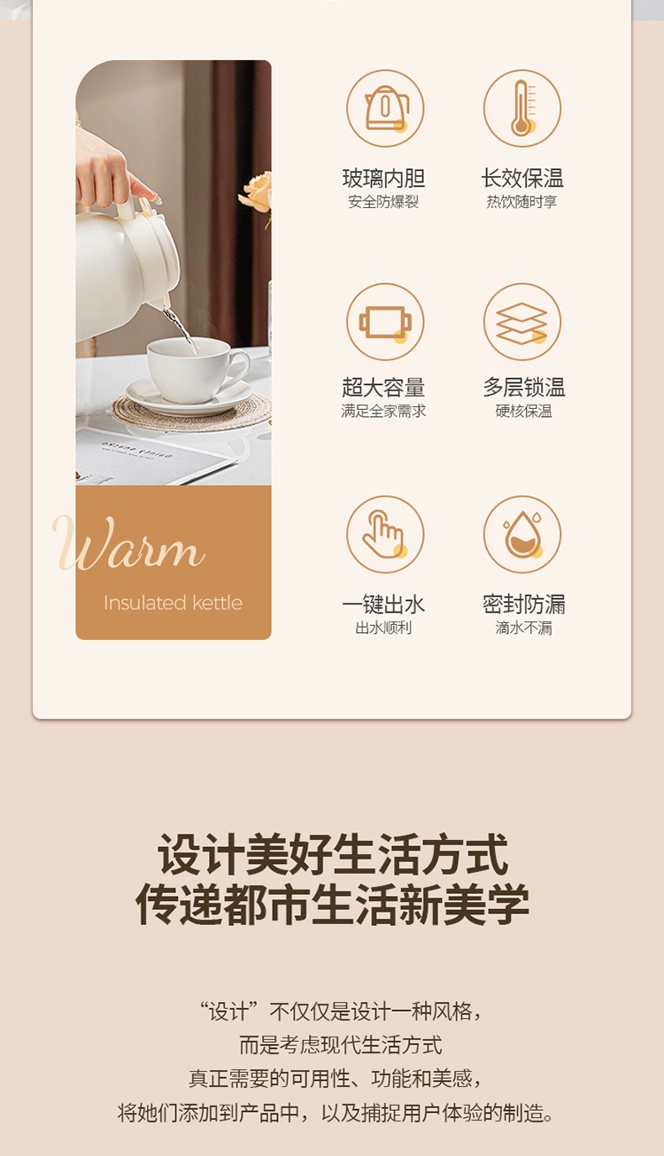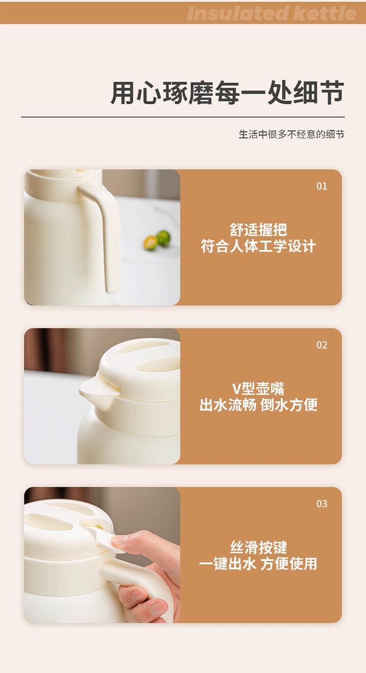 这款2024新款的暖白保温壶颜值爆表,简约而不失轻奢感,放在家里任何角落都能成为一道温馨的风景线。