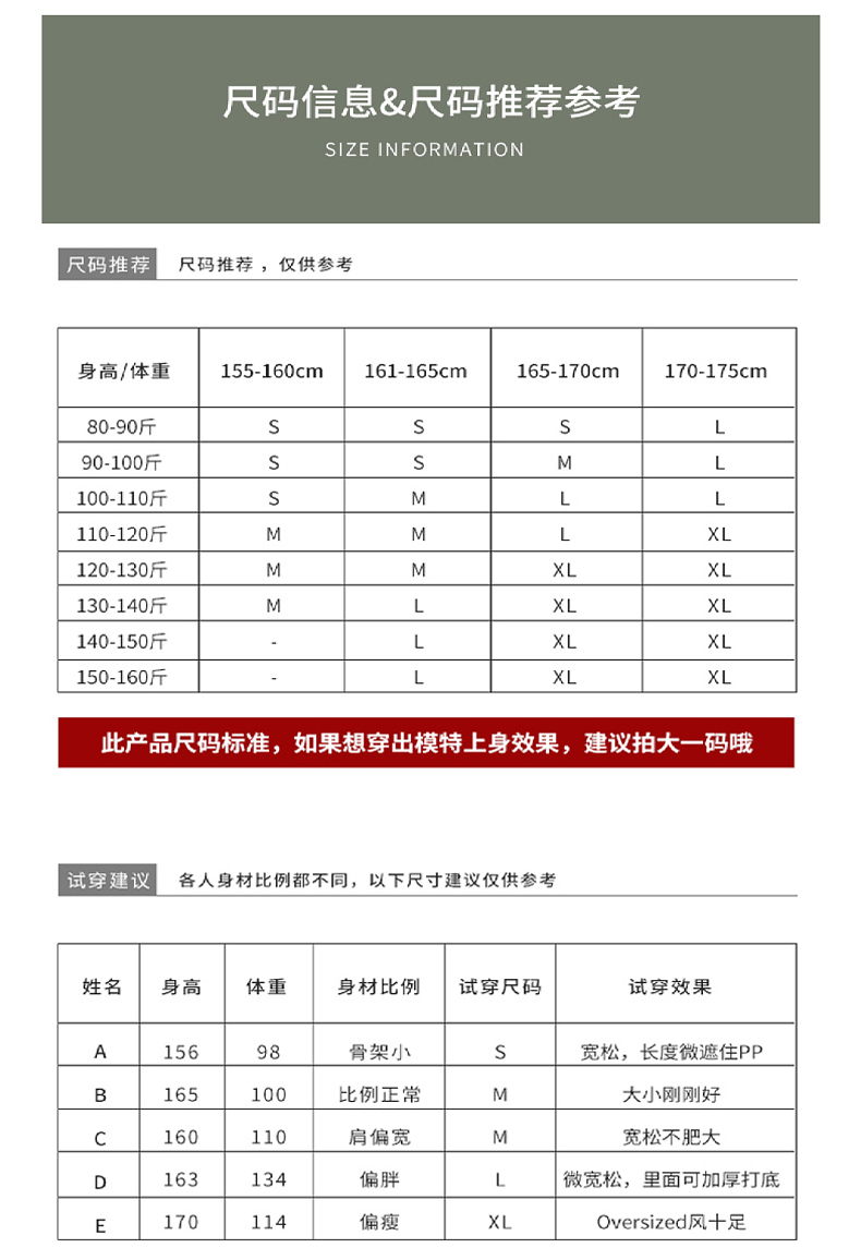 - ¥79.90 炭灰色(春秋常规不加绒),XL(145-165斤)