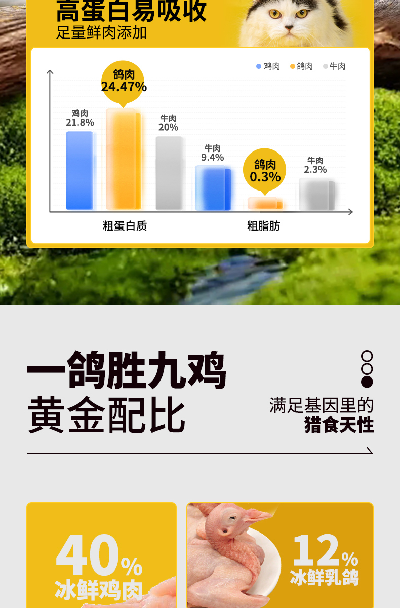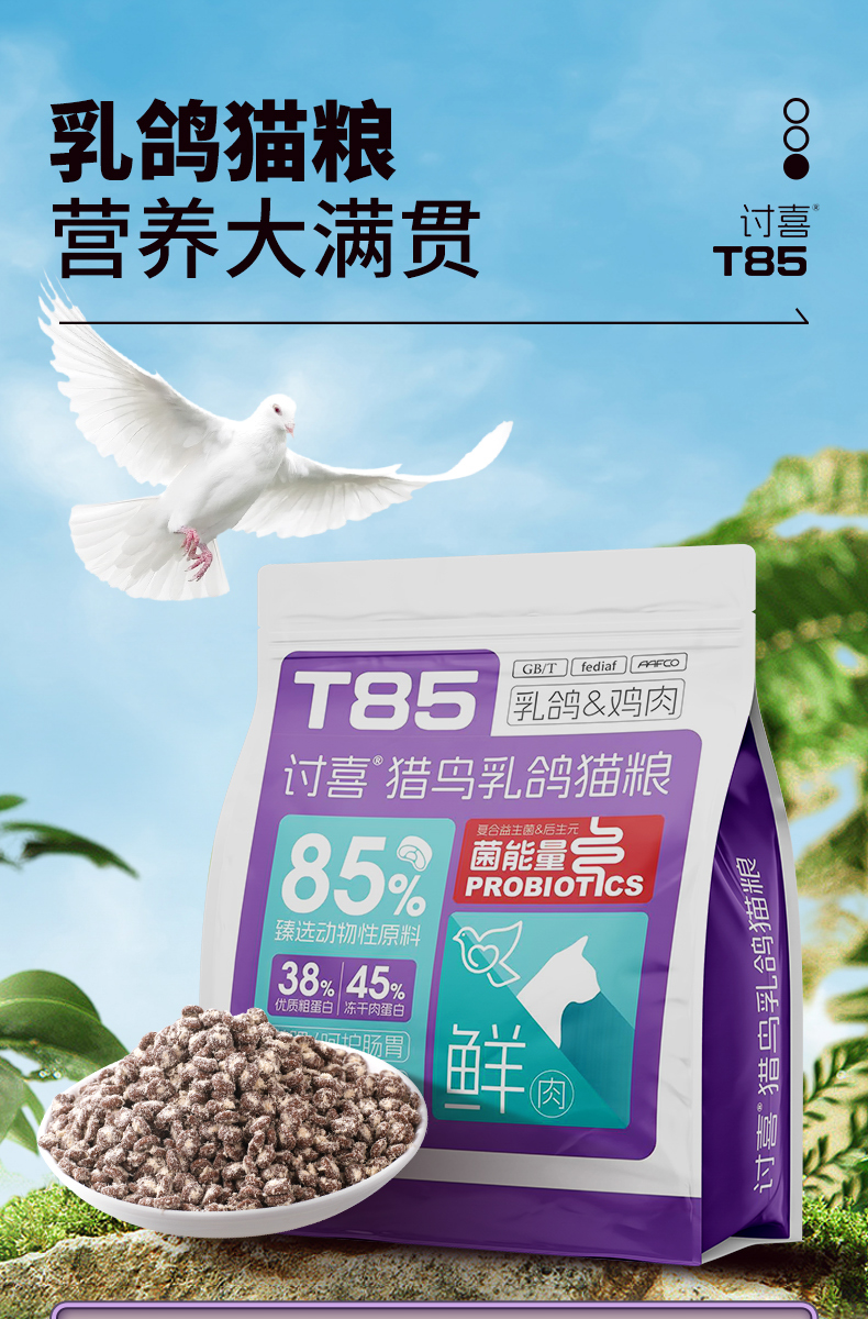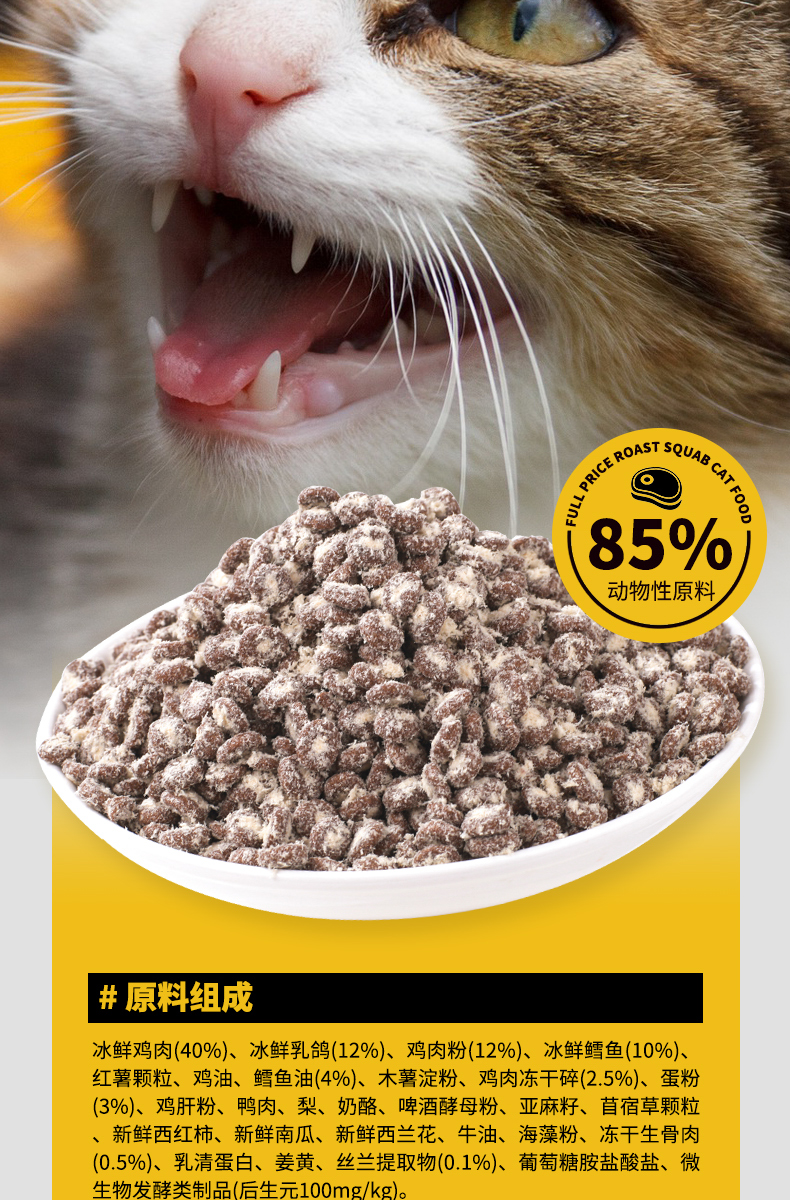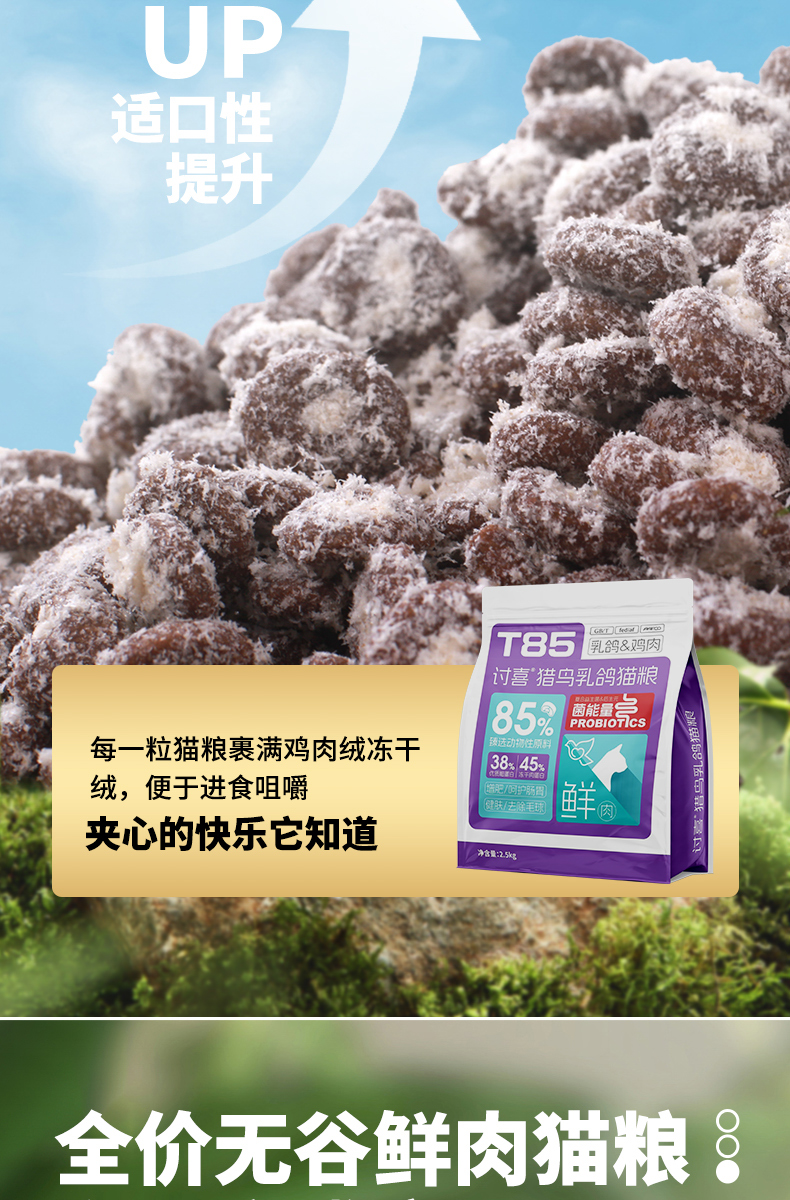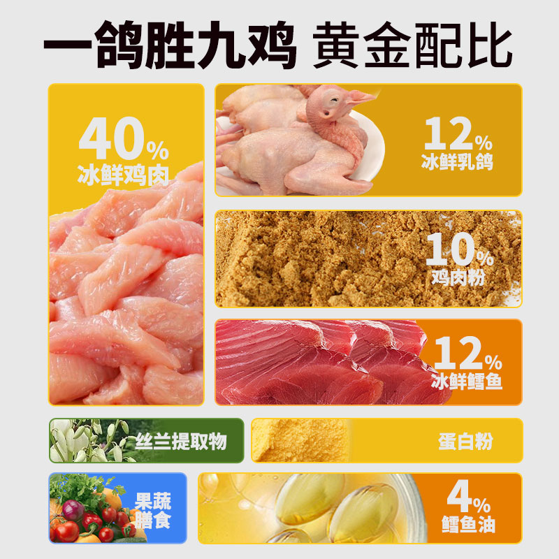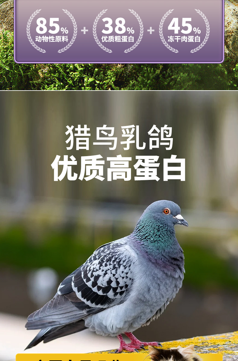 - ¥105.36正装5斤*2袋(送四袋100g试吃装),讨喜--乳鸽鲜肉猫粮--菌能量促吸收--呵护肠胃
