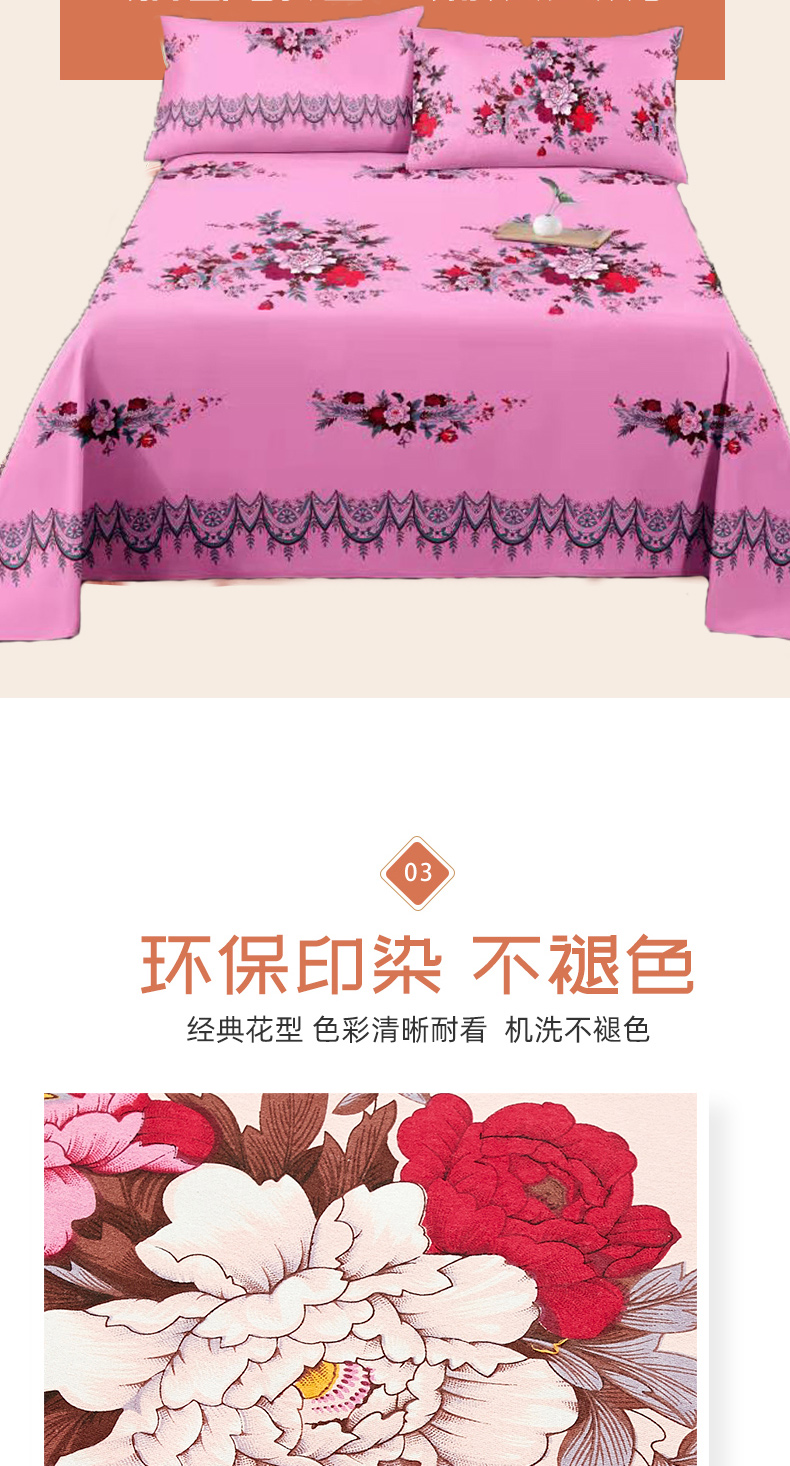 - ¥39.90国民浅粉,三件套(床单250cm*230cm+枕套一对)