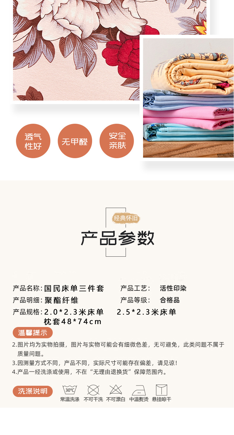 - ¥39.90国民深粉,三件套(床单250cm*230cm+枕套一对)