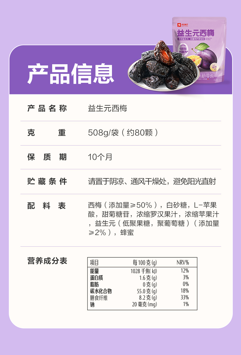 - ¥39.80【囤货推荐】益生元西梅508g*2袋