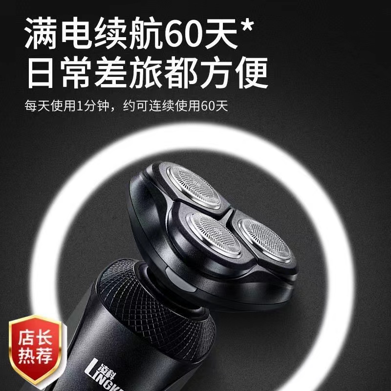 凌科LINGKE男士充电式胡须刀男士usb便携旅行可拆刀头水洗刮胡刀