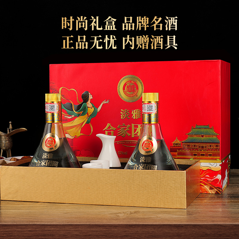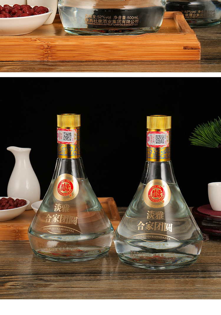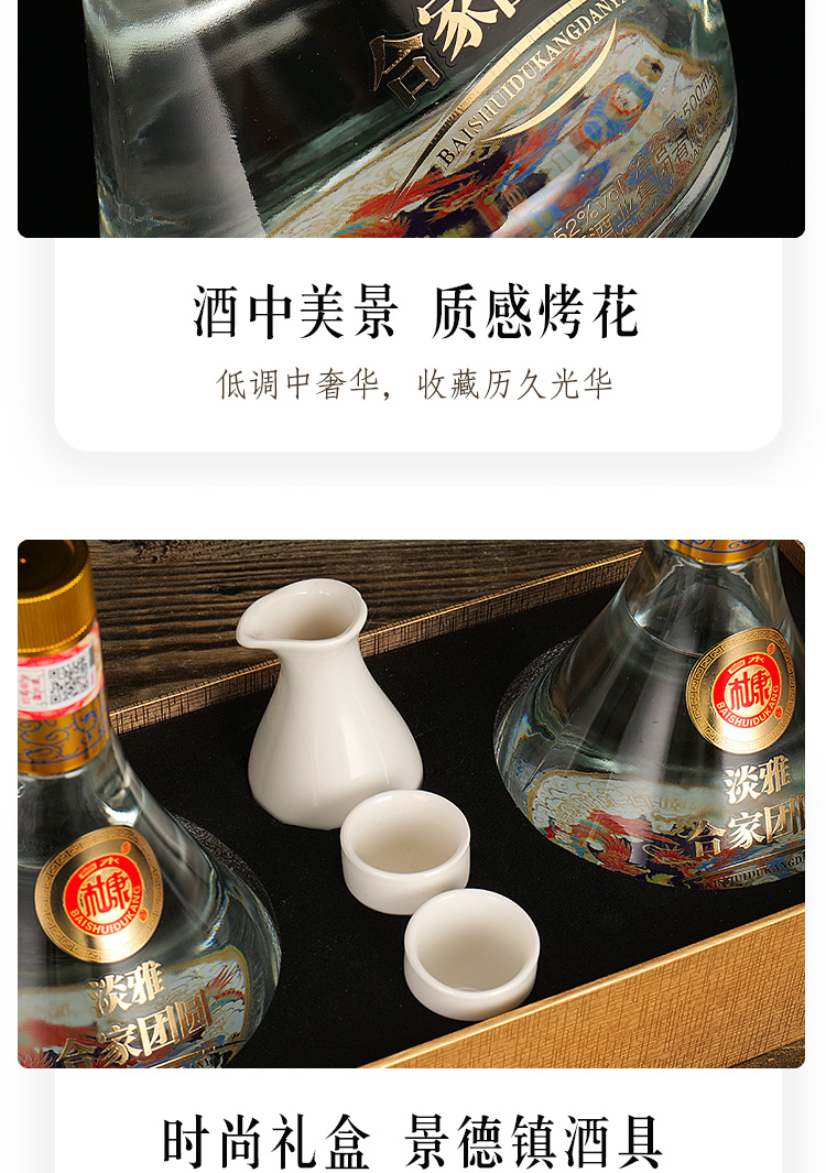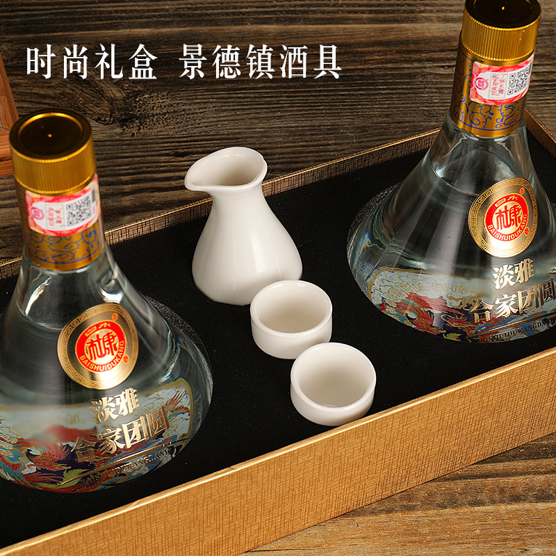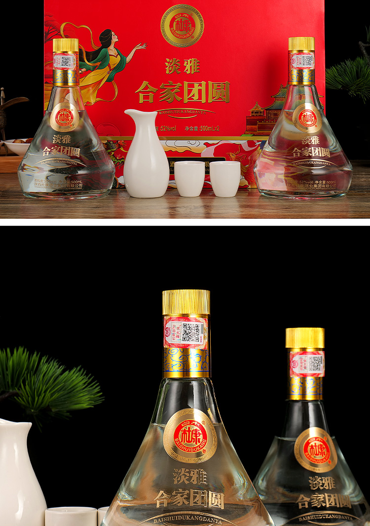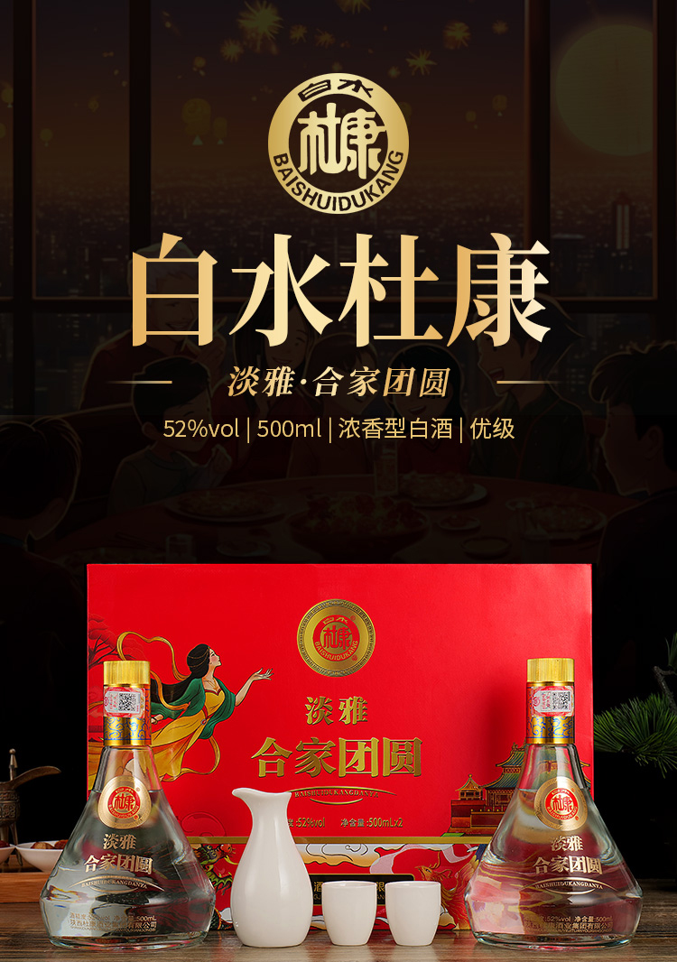 白水杜康淡雅合家团圆浓香型白酒送一套酒具一整箱52度500ml*2瓶