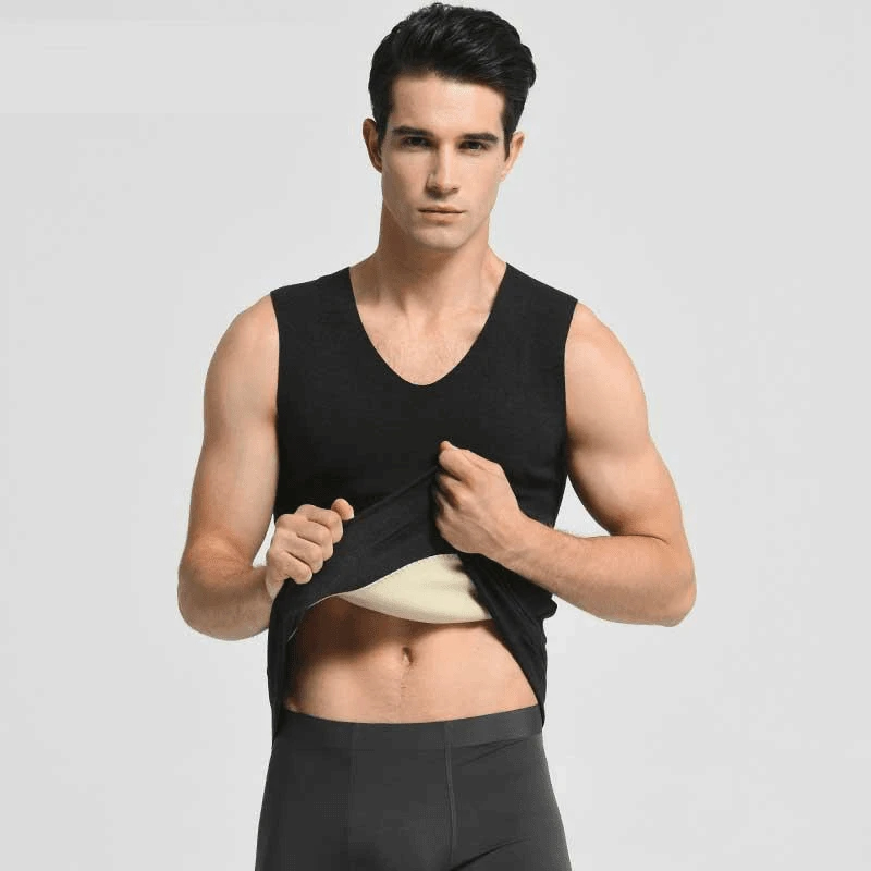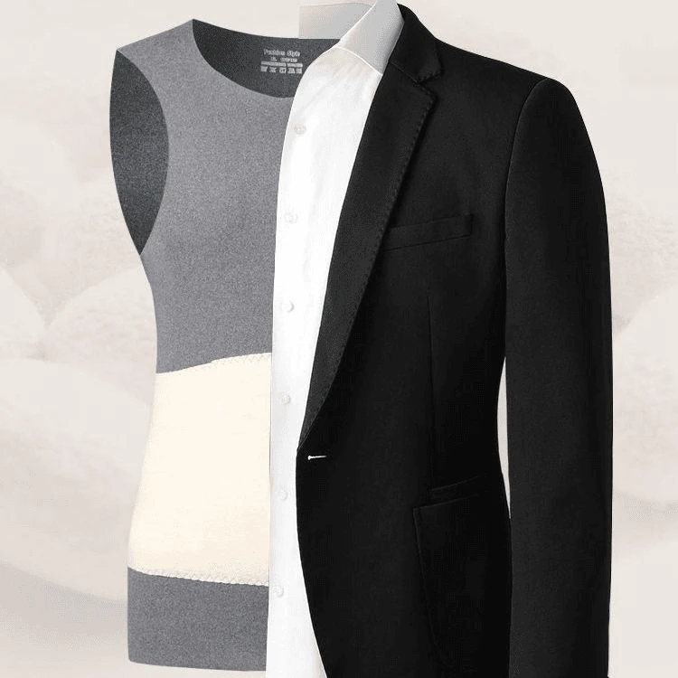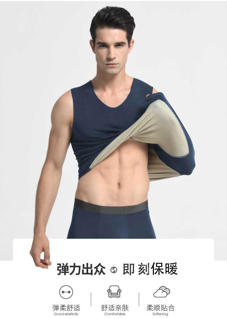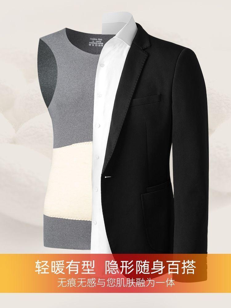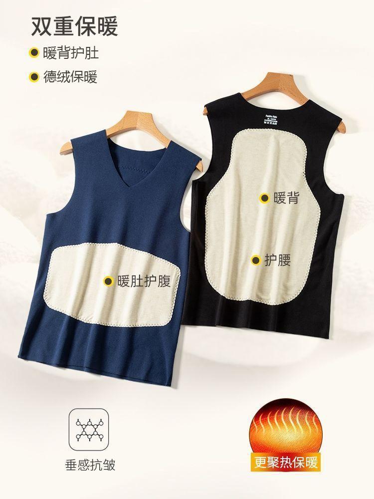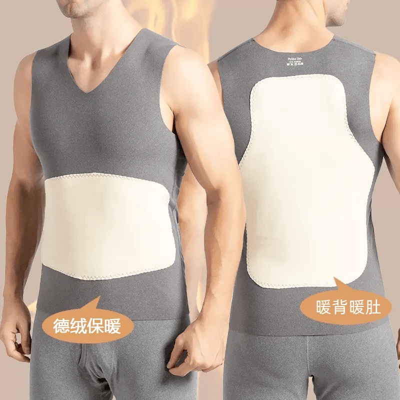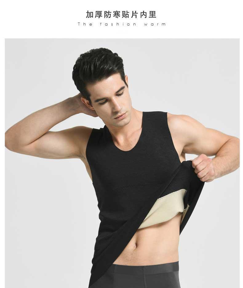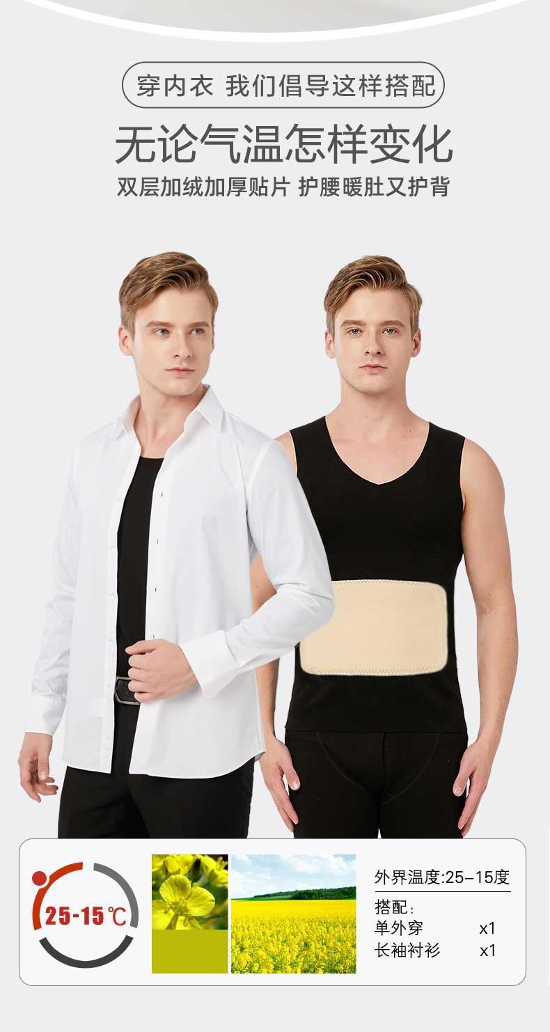 【29.9/2件】加绒加厚秋冬男士双层保暖贴片背心打底衫护腰暖背机洗