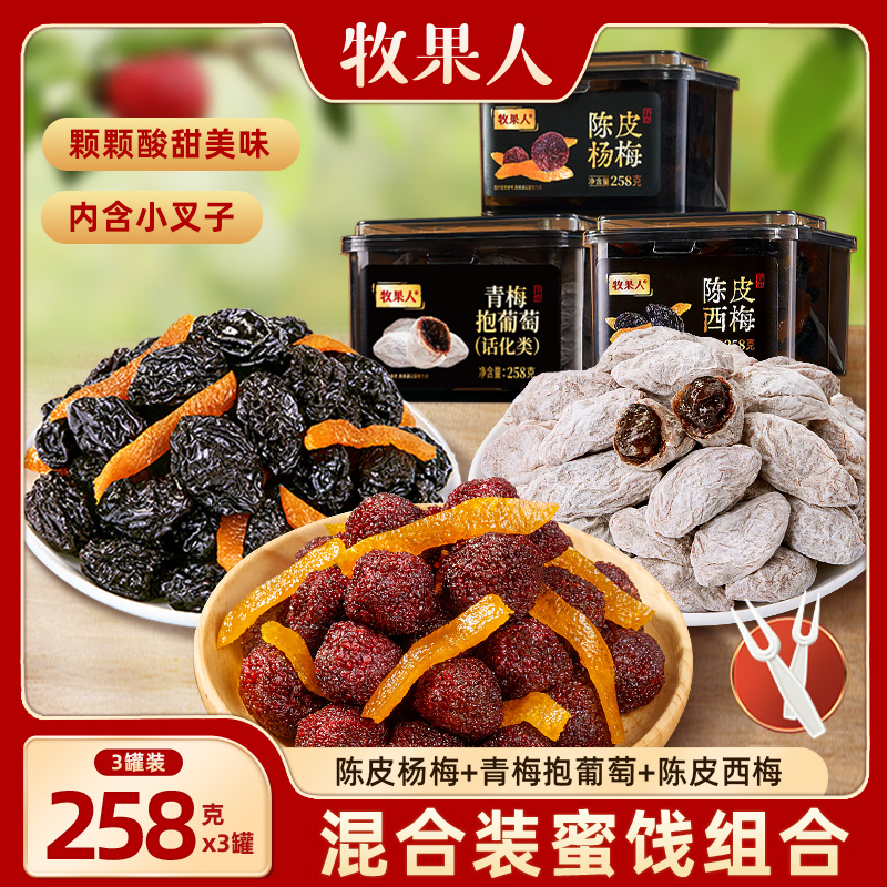- ¥99.90陈皮杨梅258g*1罐+陈皮西梅258g*1罐+青梅抱葡萄258g*1罐(豪华组合三罐都有)