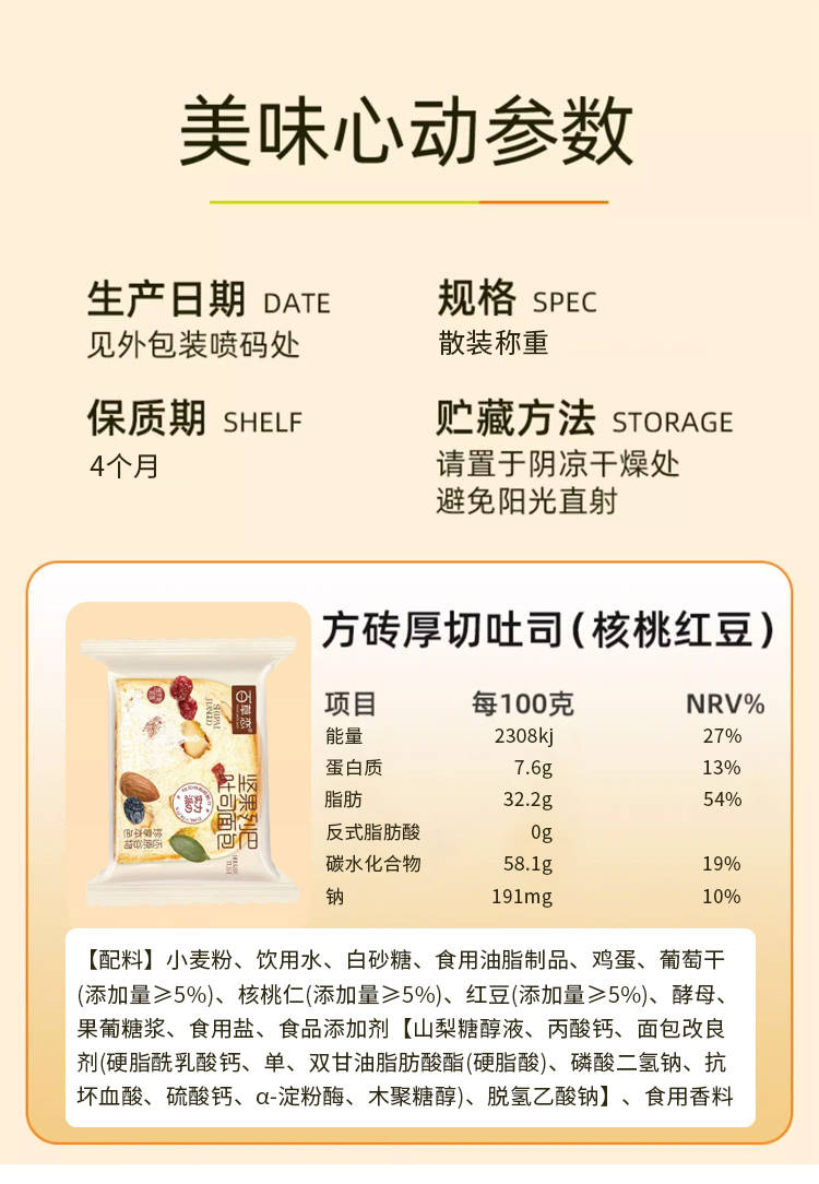 50g*10包(坚果列巴吐司面包)