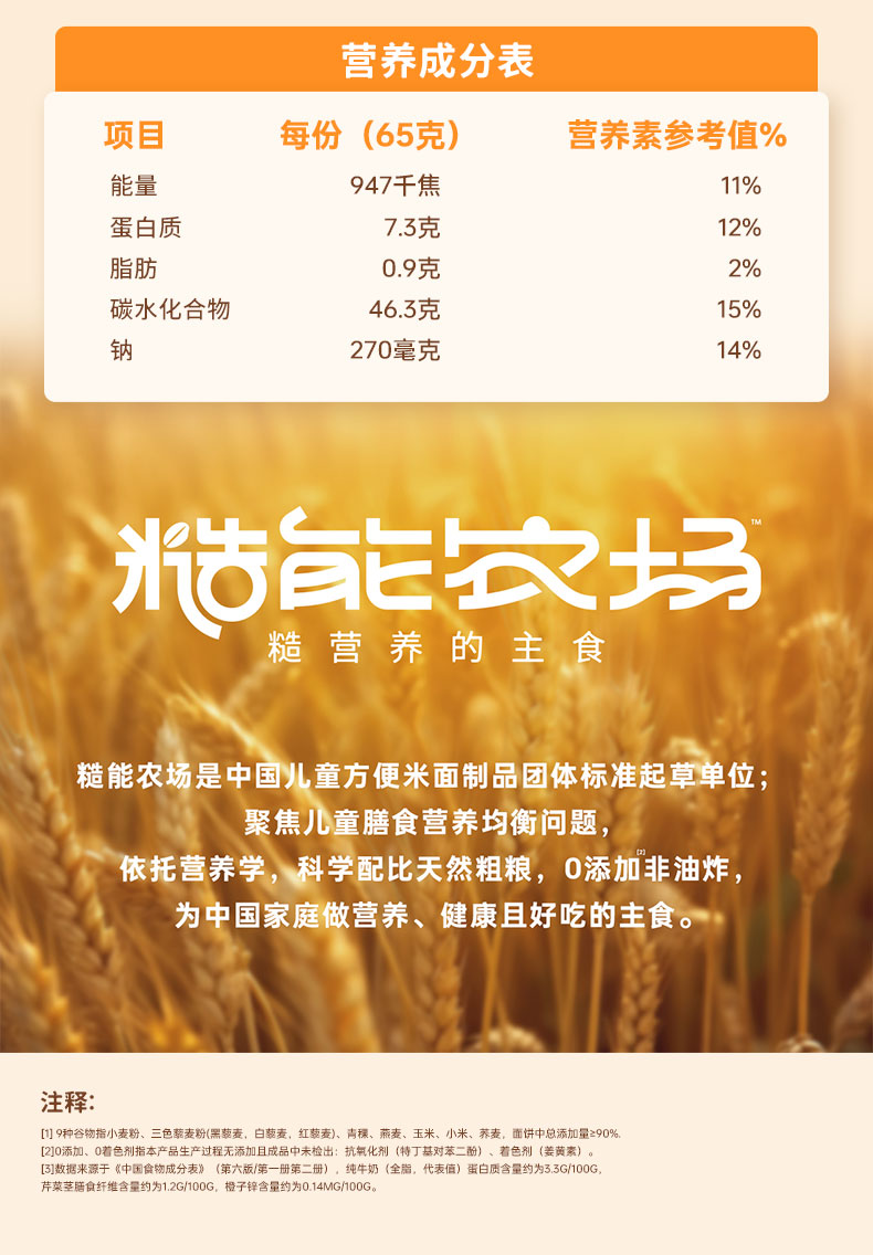 【官方正品】糙能农场九谷营养面儿童方便面干制面九谷荞麦面面条