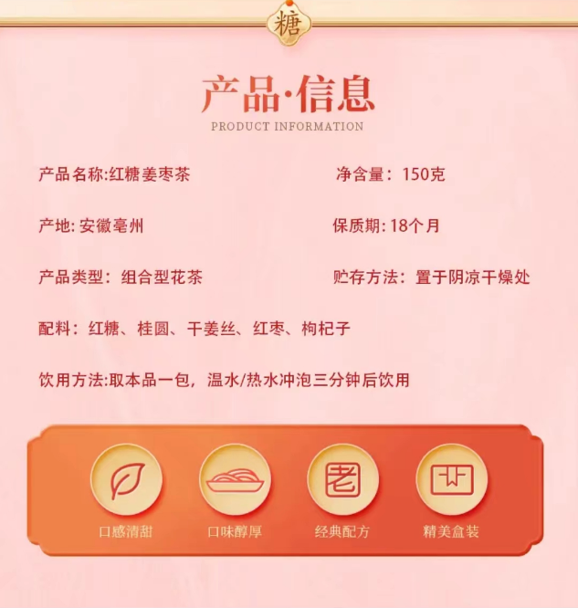 红糖姜枣茶 桂圆红枣枸杞茶 姜茶 黑糖姜枣茶150g/盒女人茶女神杯