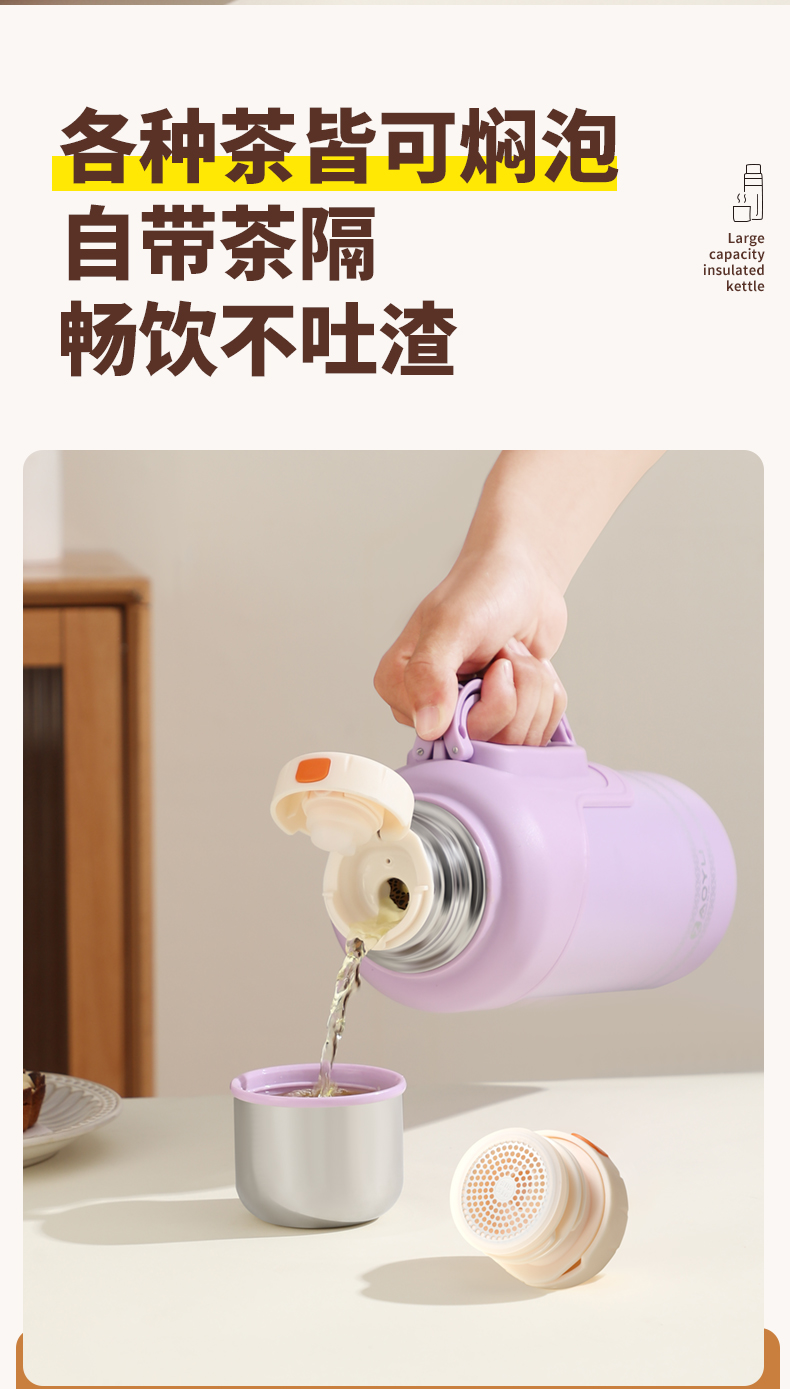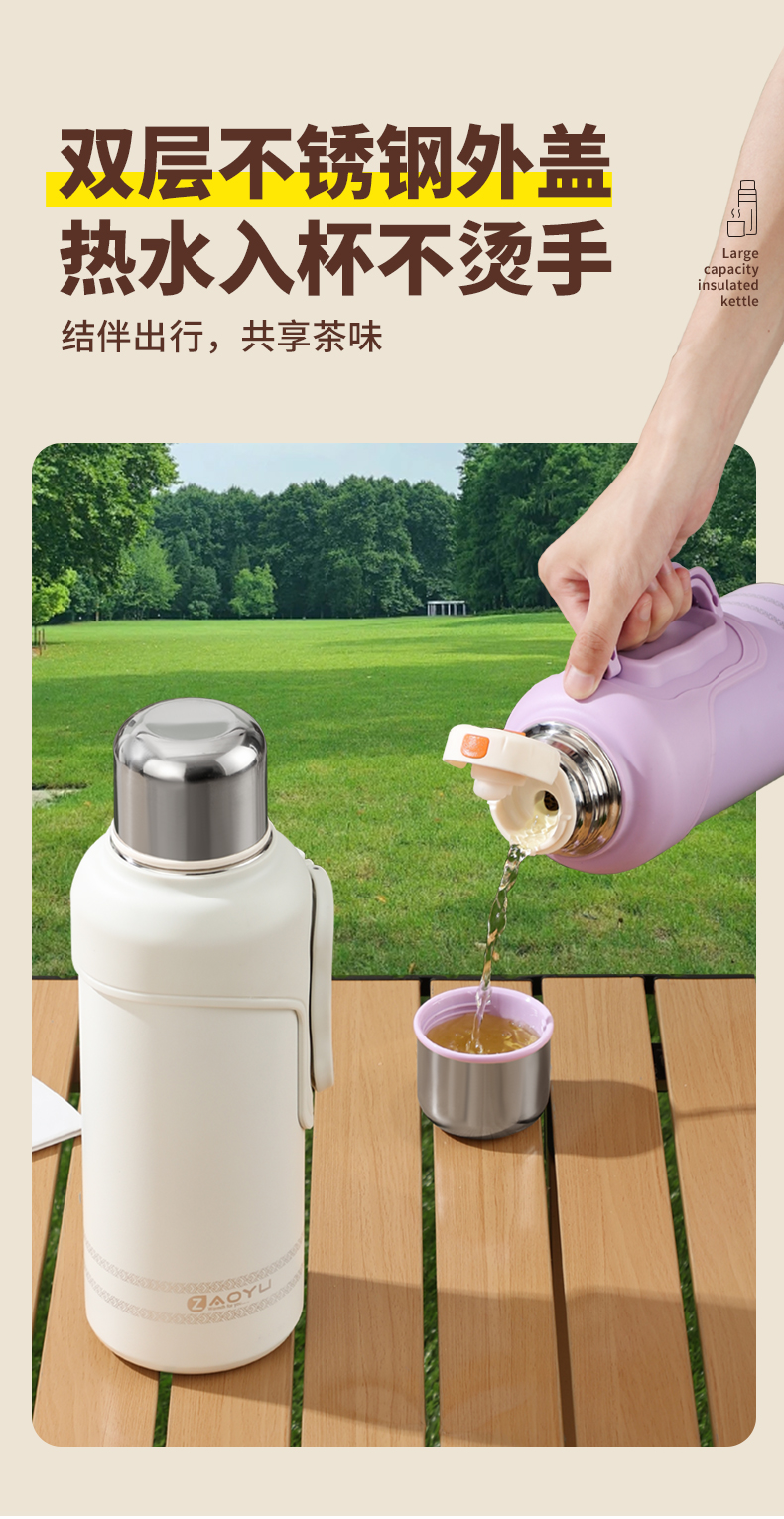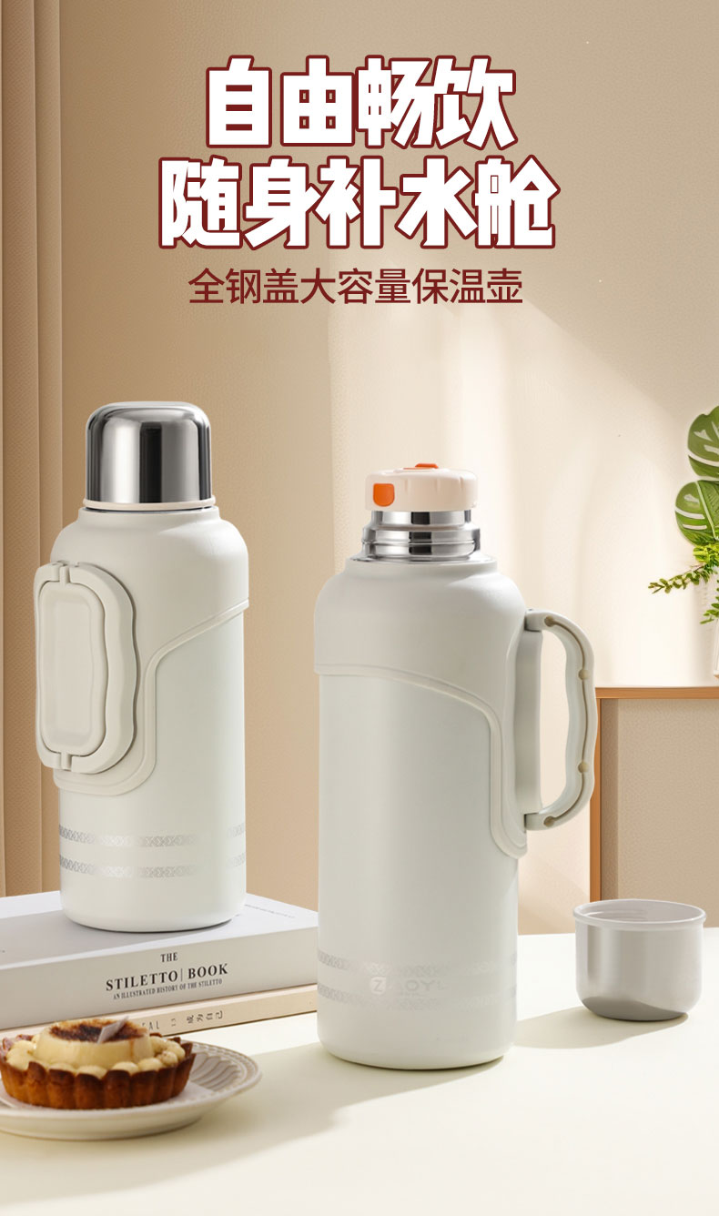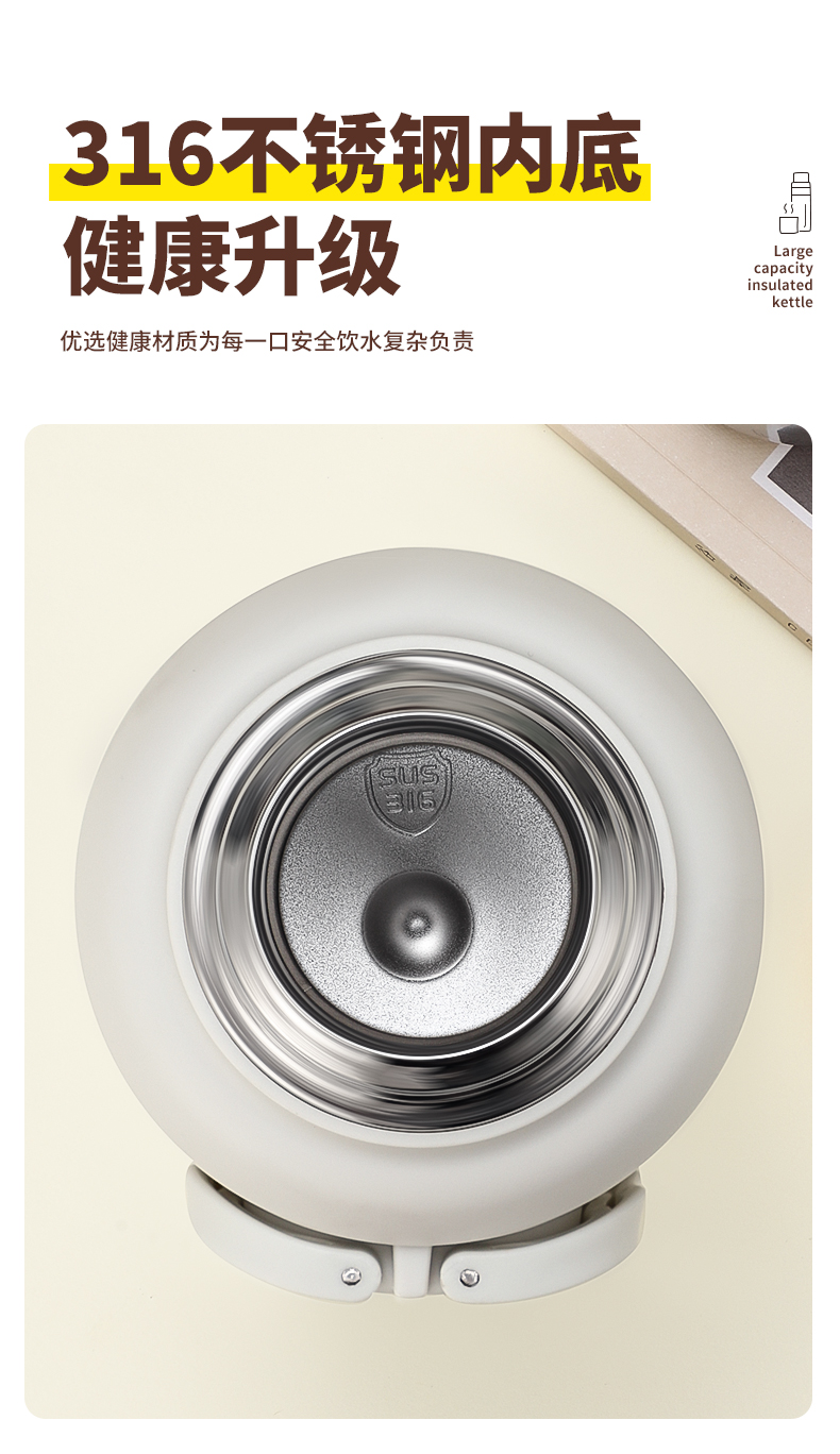 大容量保温壶316不锈钢轻氧金刚壶家用暖壶户外便携焖茶壶水杯
