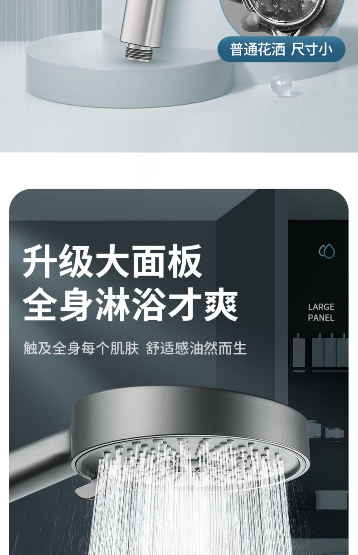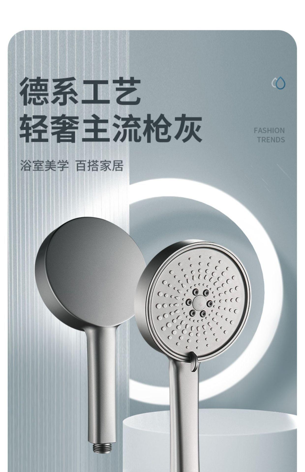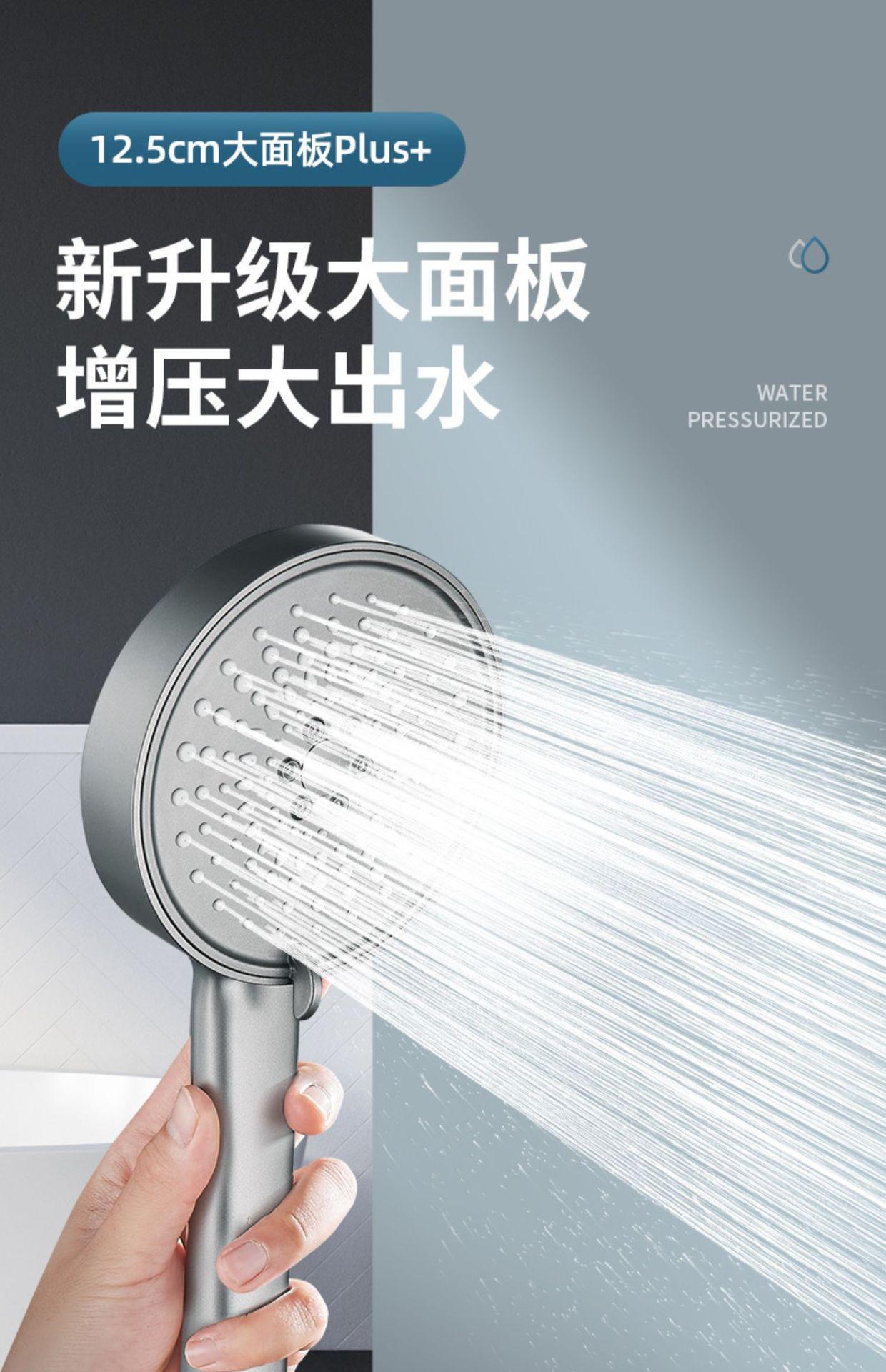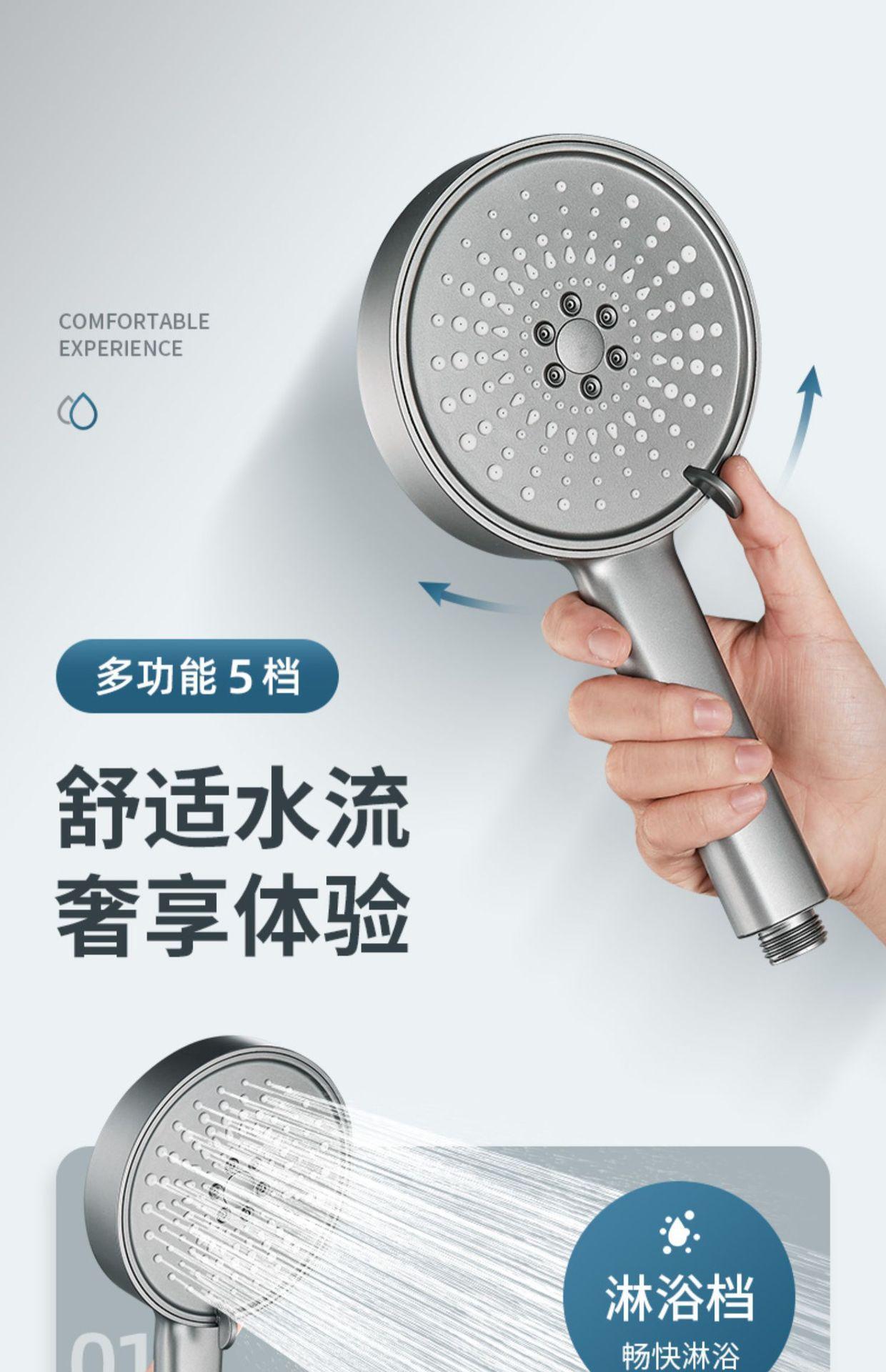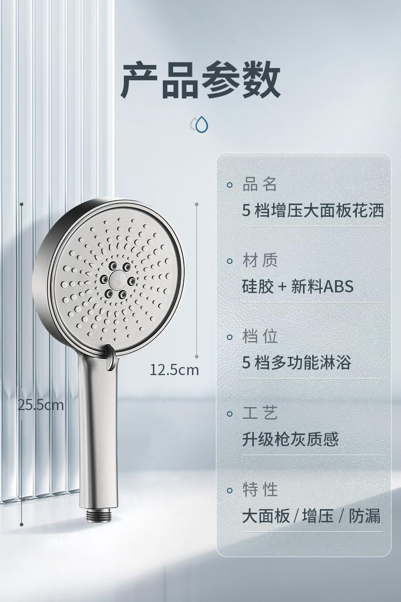 【枪灰大面板五档花洒+软管】喷雾增压花洒淋浴喷头硅胶防烫五档