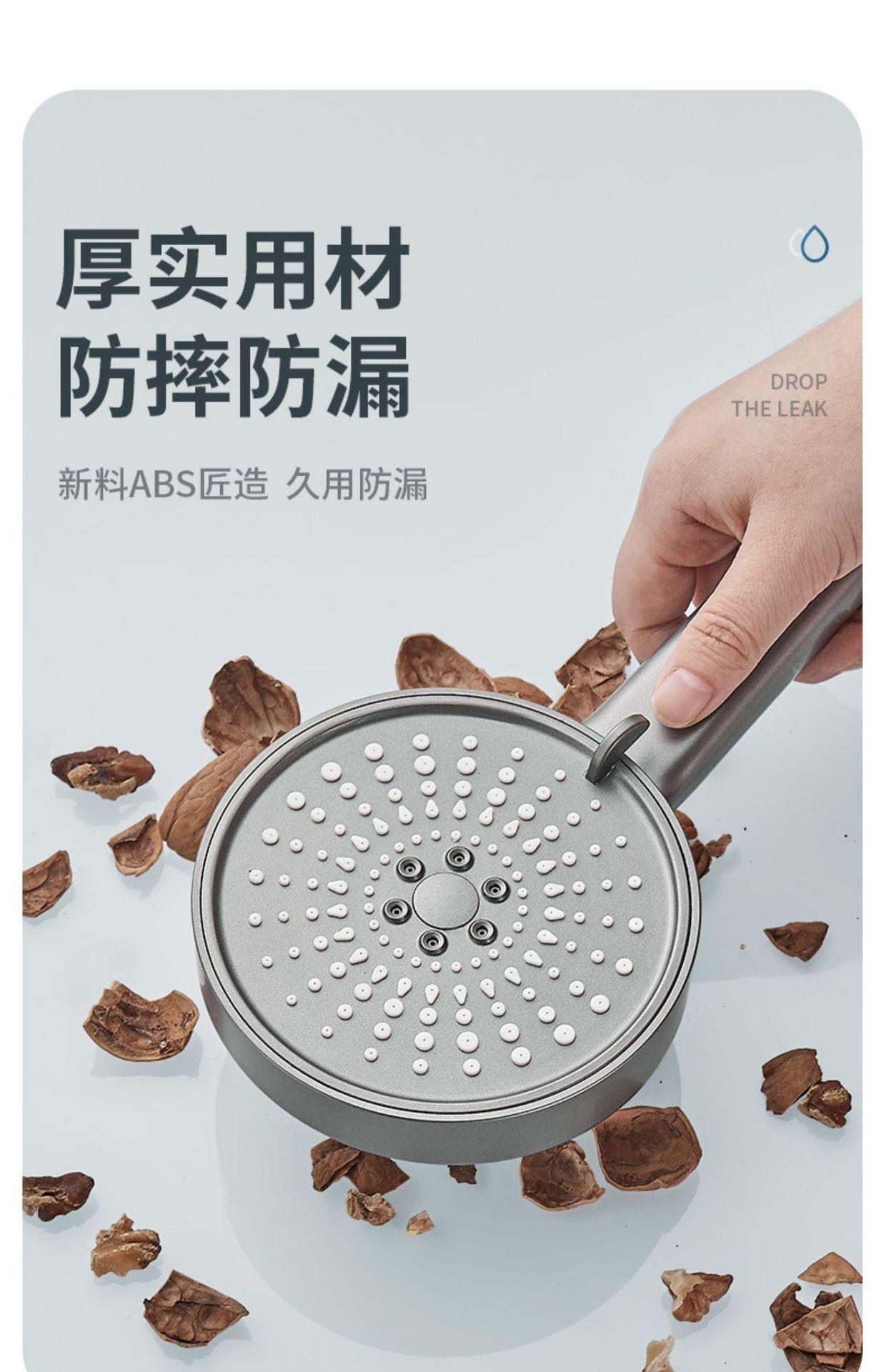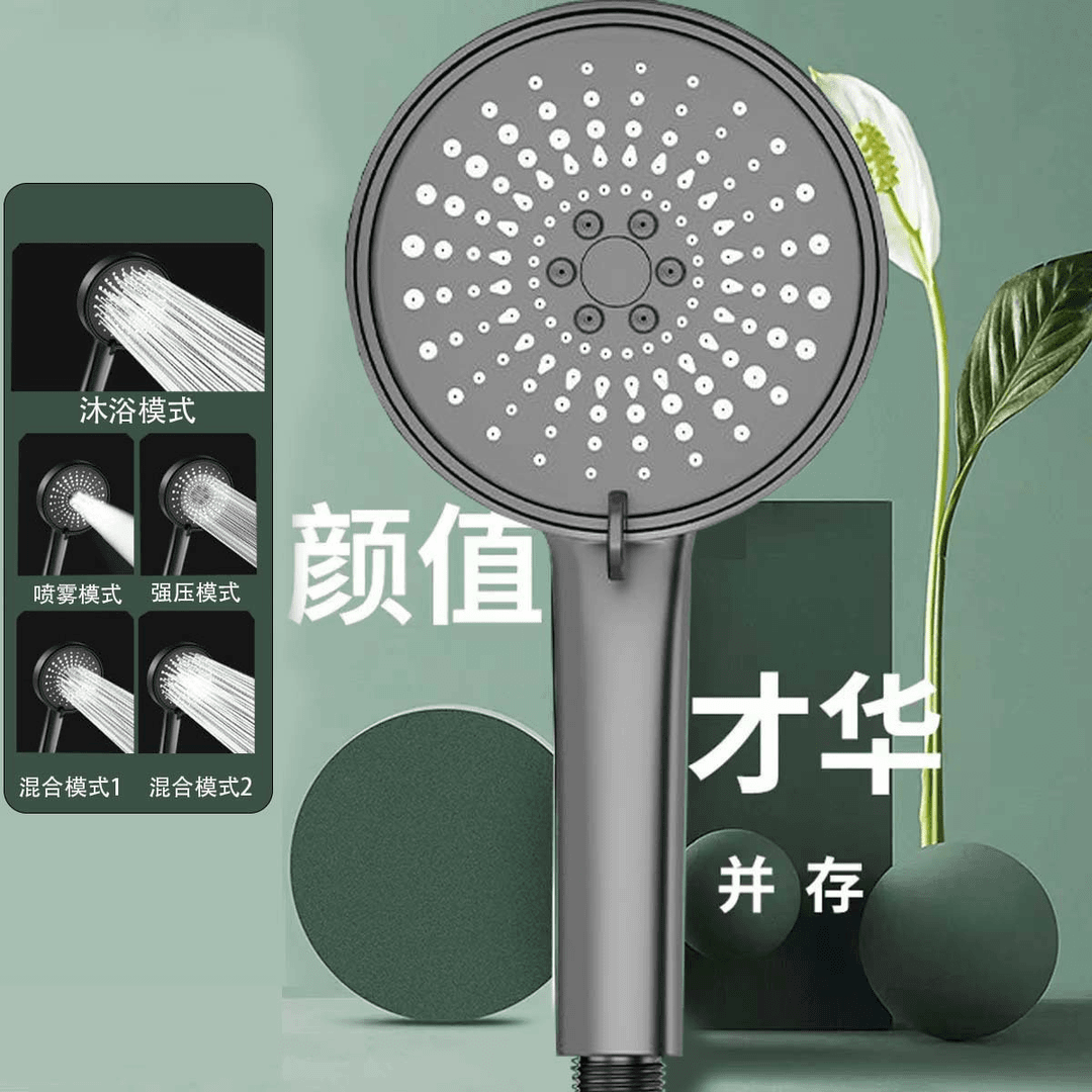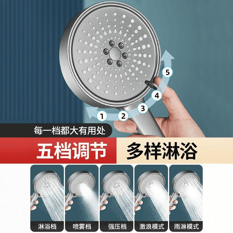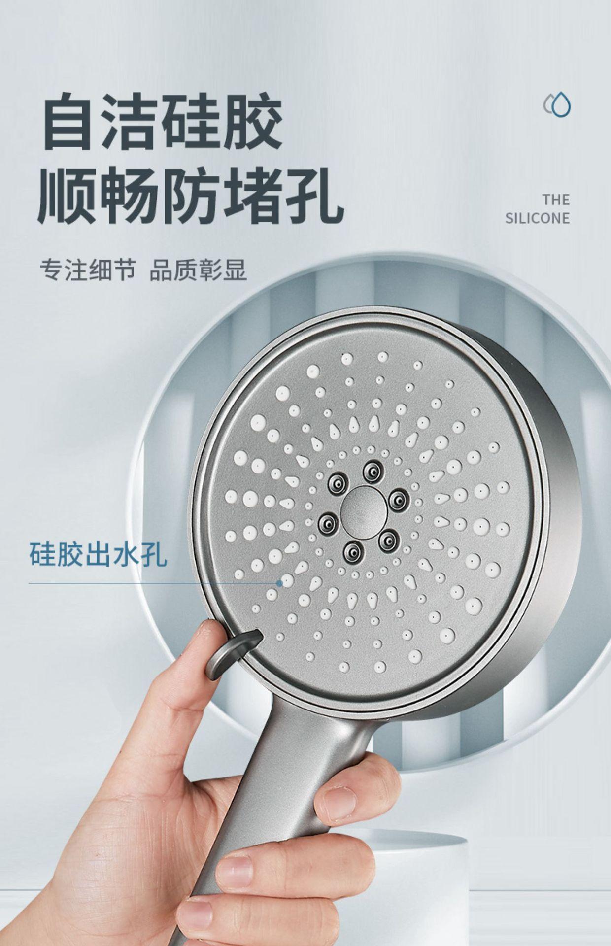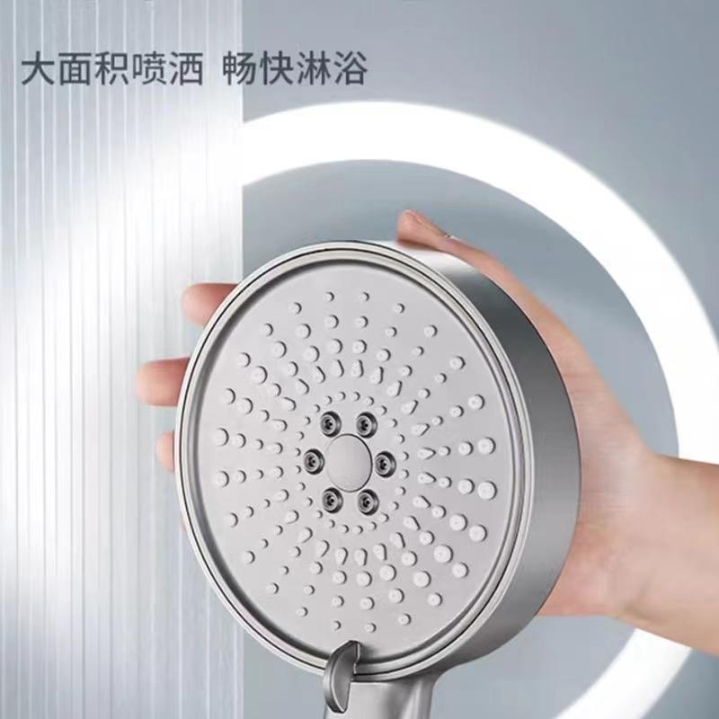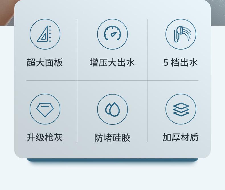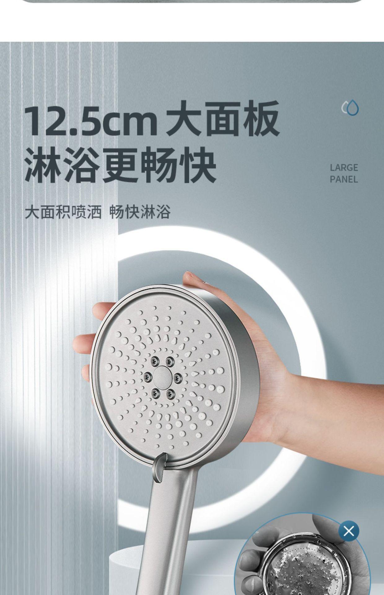 【枪灰大面板五档花洒+软管】喷雾增压花洒淋浴喷头硅胶防烫五档