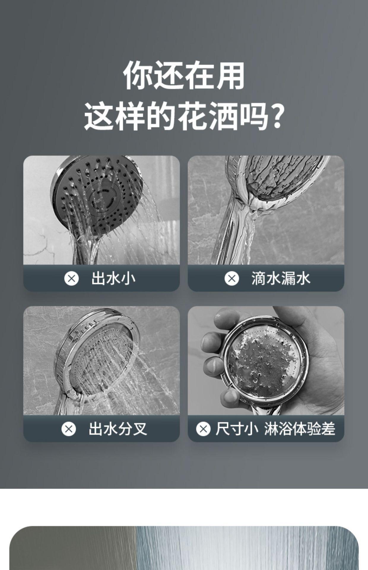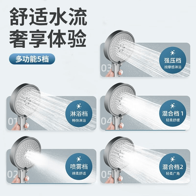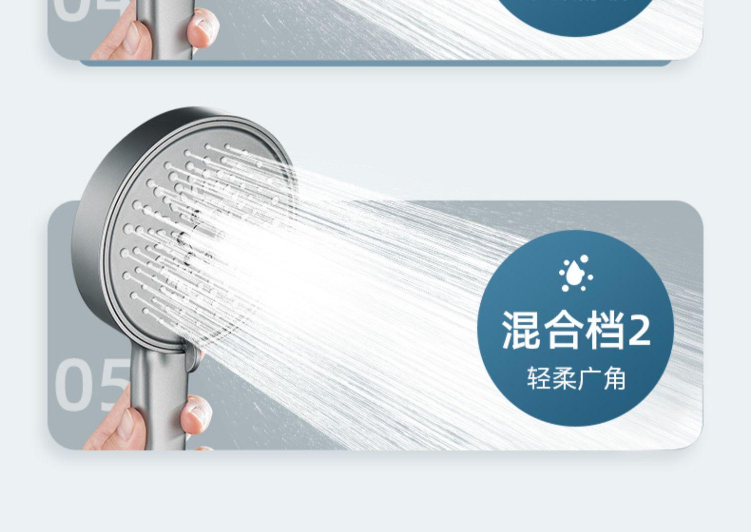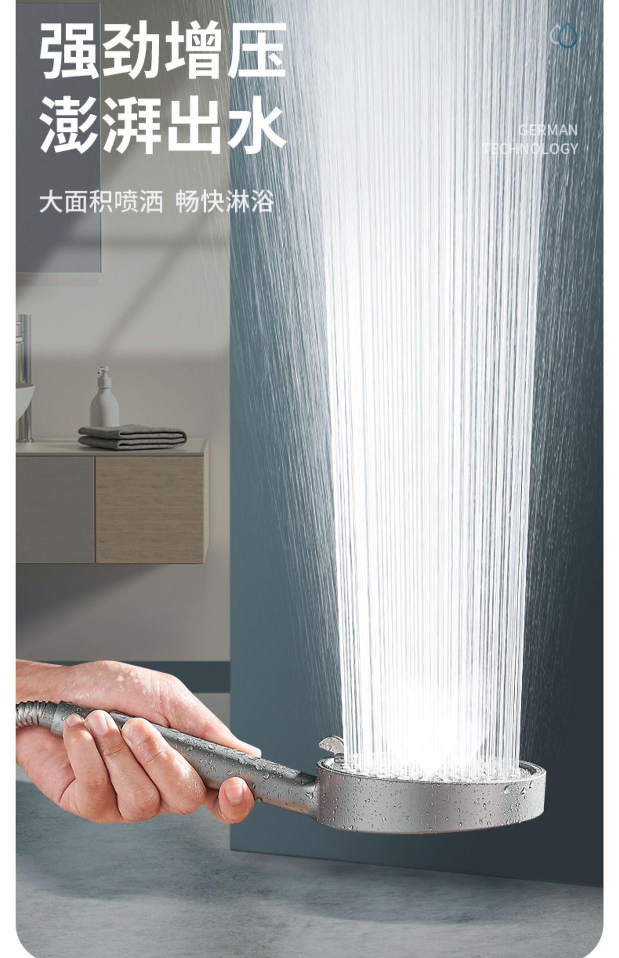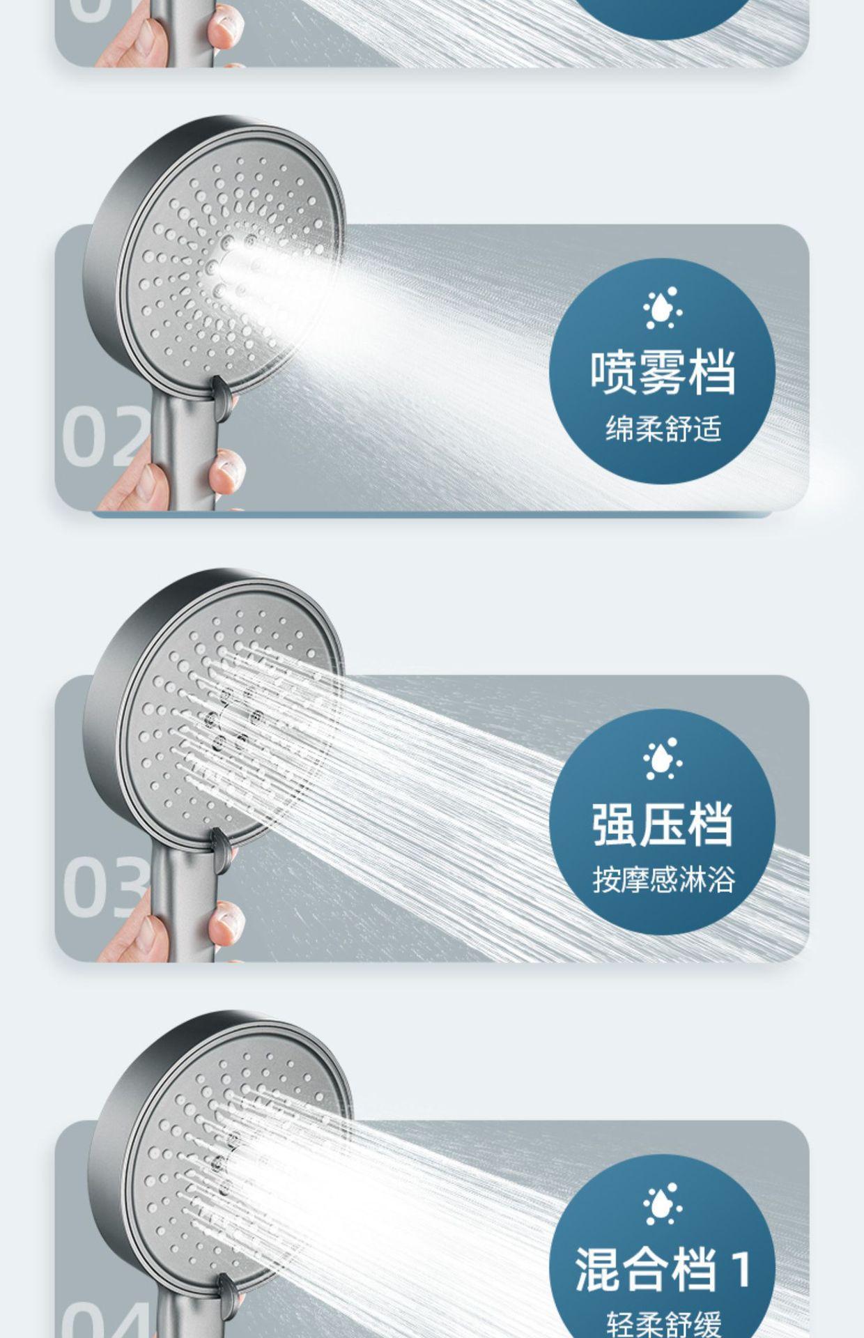 【枪灰大面板五档花洒+软管】喷雾增压花洒淋浴喷头硅胶防烫五档