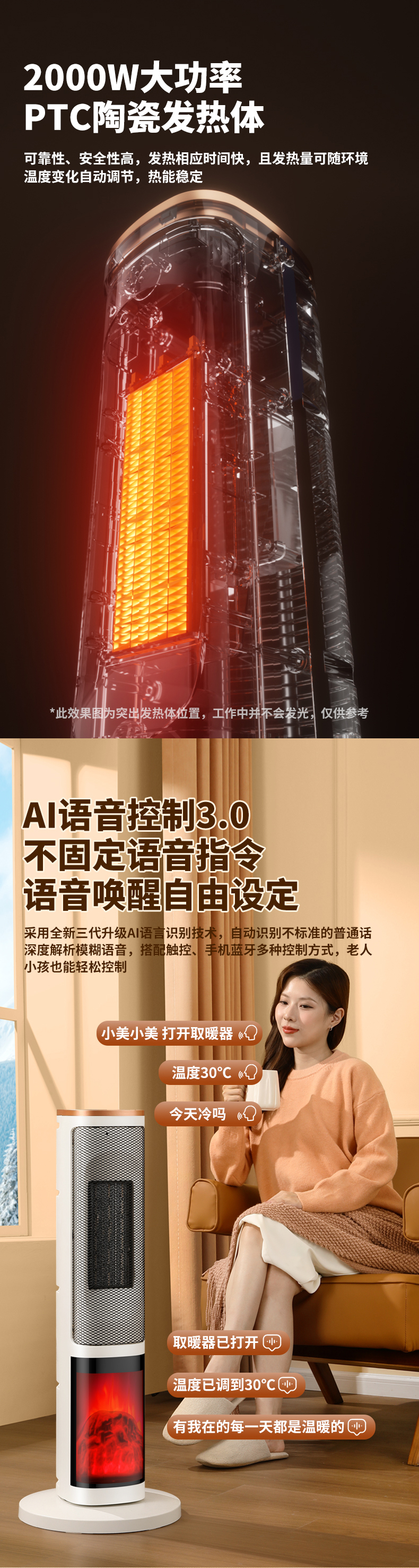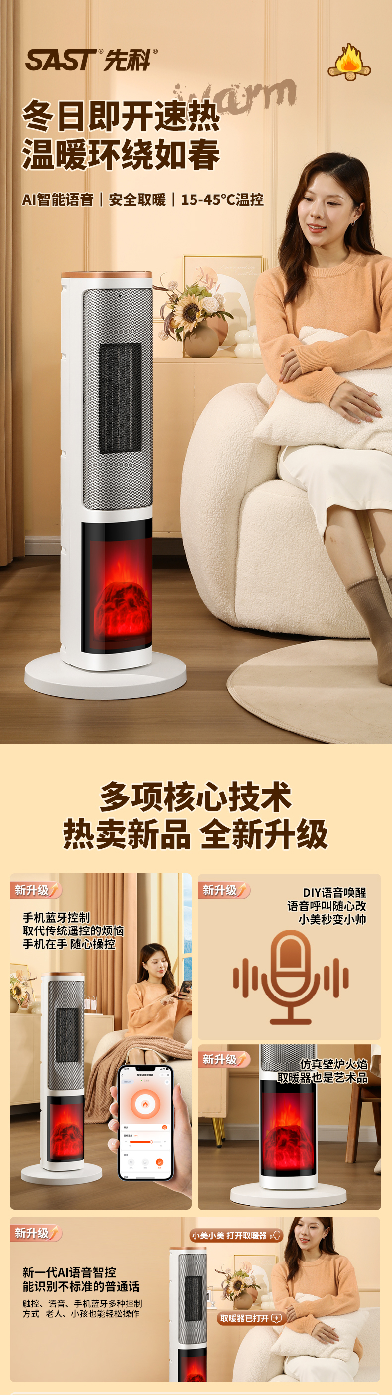 标题:【SAST/先科智能语音壁炉取暖器——冬日里的温暖小太阳!】 非常满意这次购物体验!先科这款智能语音壁炉取暖器,真的是集科技、实用与美观于一身的冬日必备神器。从拆开包装的那一刻起,就被它精致的外观所吸引,小巧的塔式设计,不仅不占空间,还非常时尚,完美融入了我的家居环境。 首先,智能语音控制功能真的太方便了!无论是忙碌时还是慵懒地躺在沙发上,只需简单口令,它就能迅速响应,调整温度或风速,真正实现了动口不动手的便捷生活。而且,触控操作也十分灵敏,老人小孩都能轻松上手。 最让我惊喜的是,它还支持升级版的手机蓝牙控制,通过手机APP就能远程操控,无论是提前预热还是在外出时调节家中温度,都随心所欲,非常人性化。 取暖效果更是没得说,速热功能让我几乎感觉不到等待的时间,房间很快就温暖如春。而且,它运行时噪音非常小,几乎可以忽略不计,让我在享受温暖的同时,也能保持一个宁静舒适的环境。 至于省电方面,虽然价格亲民,但使用了一段时间后发现,相比其他取暖设备,它的能耗确实更低,真正做到了既温暖又节能,非常适合家用。 总之,SAST/先科这款智能语音壁炉取暖器,无论是从外观设计、智能操控还是取暖效果上,都超出了我的期待,是这个冬天我收到的最贴心的礼物!强烈推荐给每一个需要温暖的你!