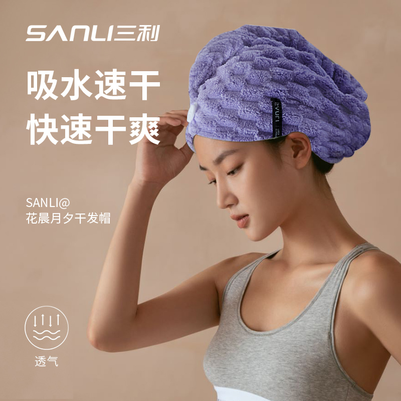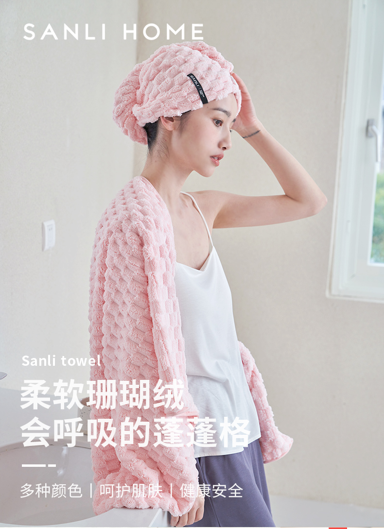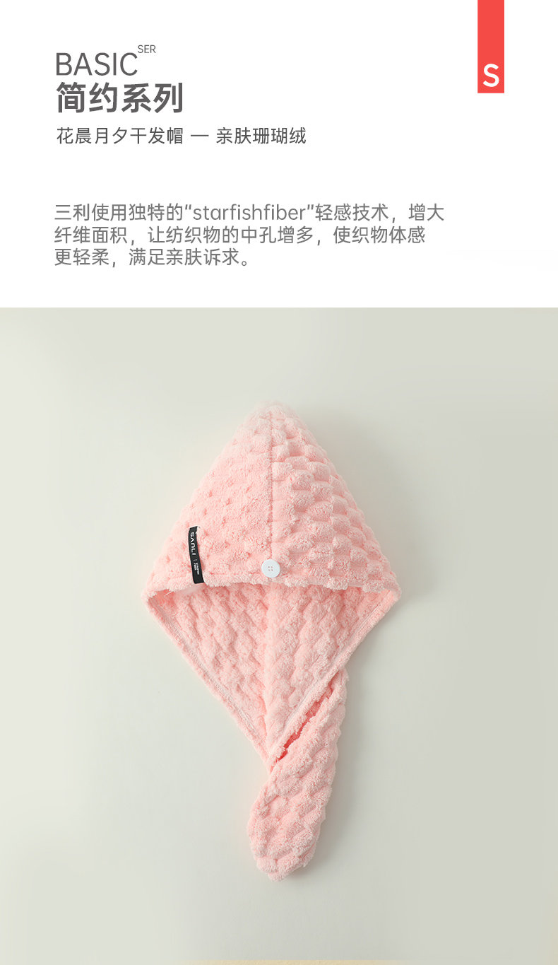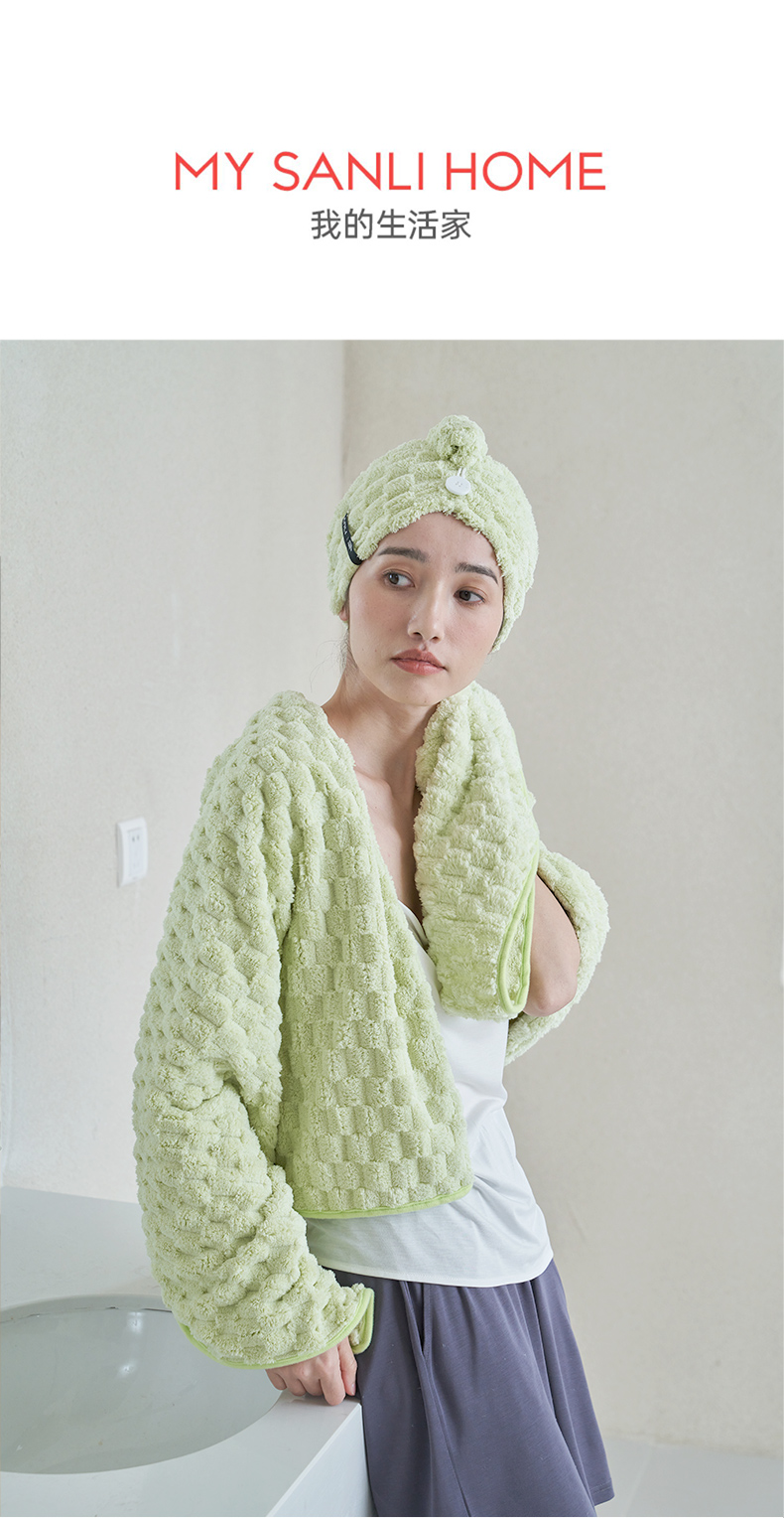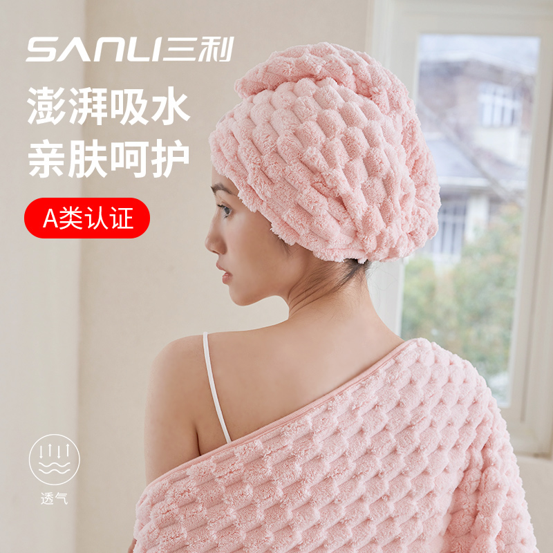 三利钻石纹珊瑚绒吸水加厚云朵绒擦头干发巾柔软成人干发帽包头巾
