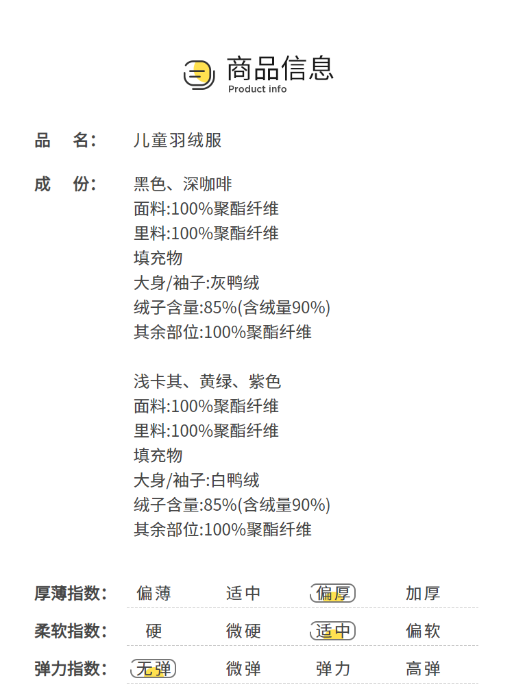 - ¥295.00黄绿41182-白鸭绒,165cm(充绒量151g)