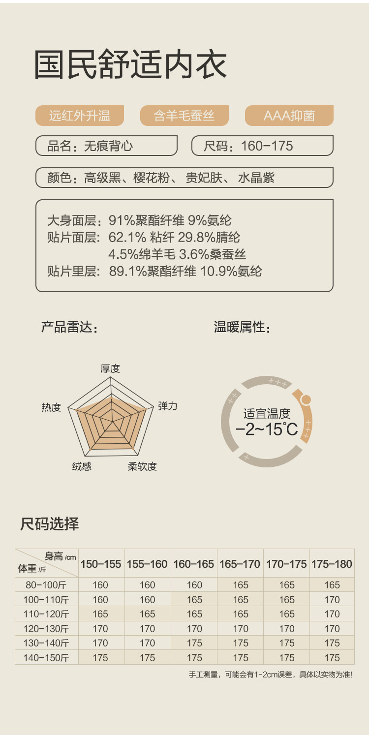 - ¥25.80米色【羊毛蚕丝背心】,2XL(175)