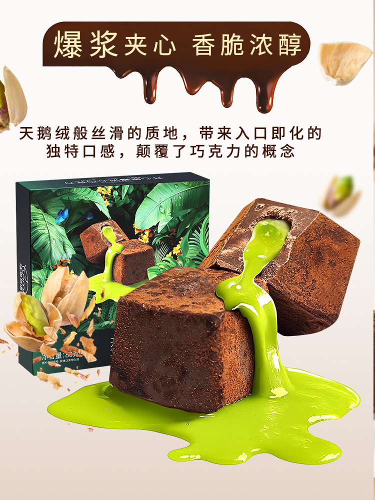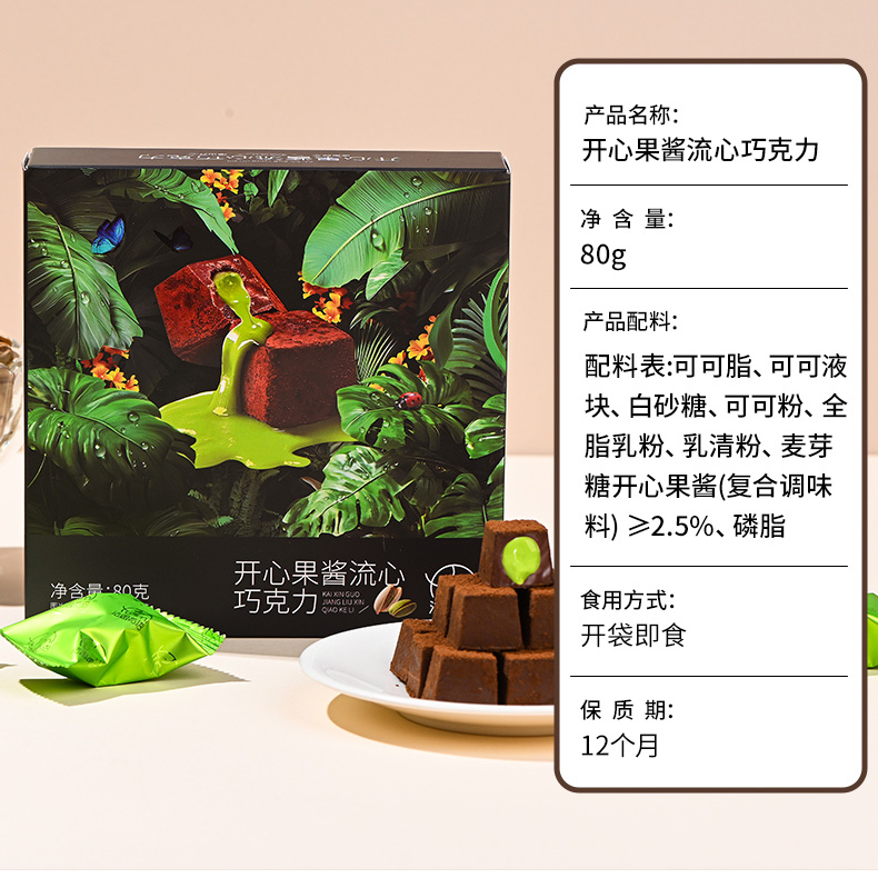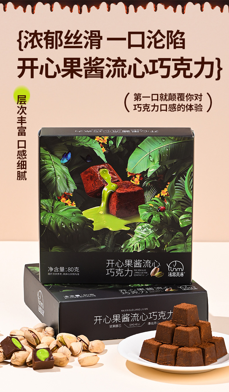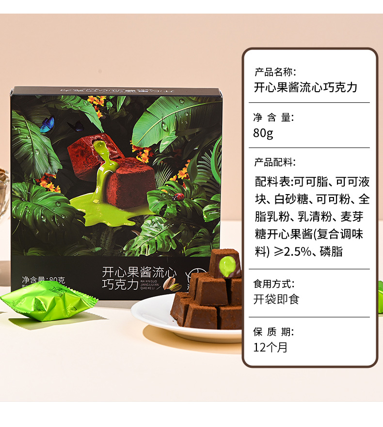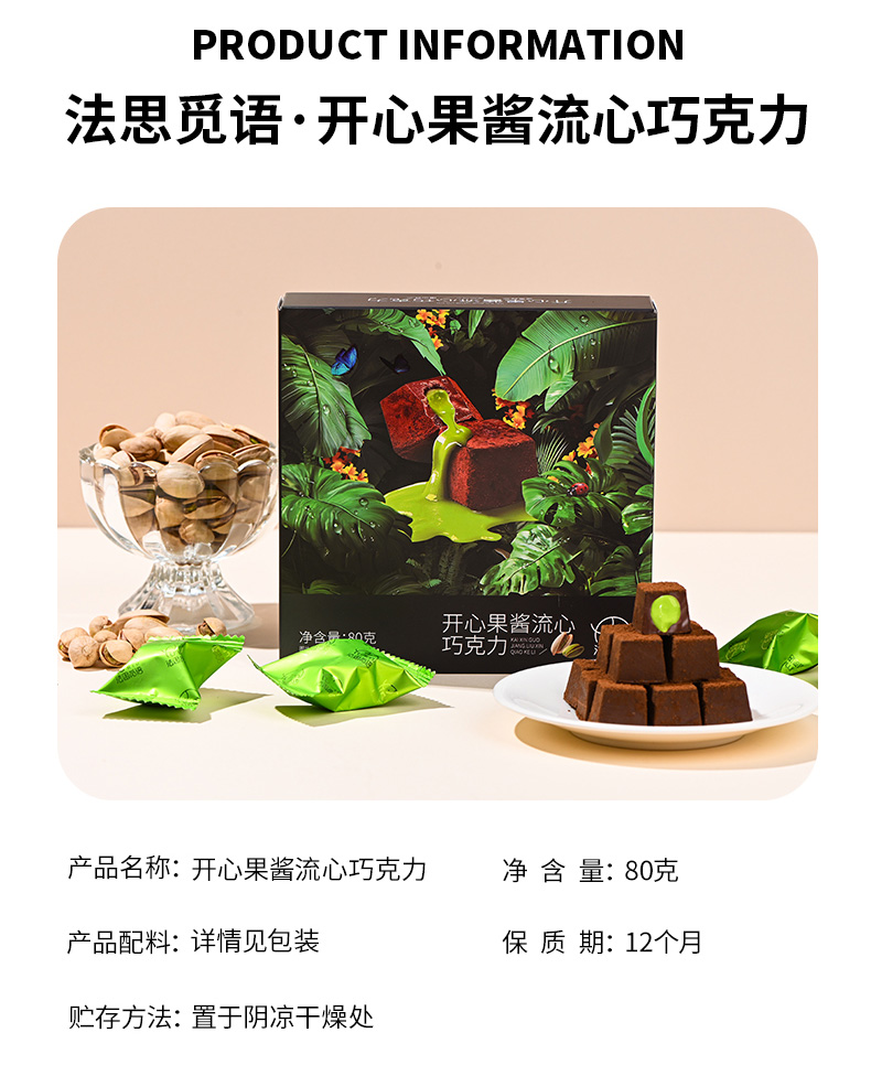 - ¥19.90开心果流心巧克力80g*3盒(分享装,75%人的选择)