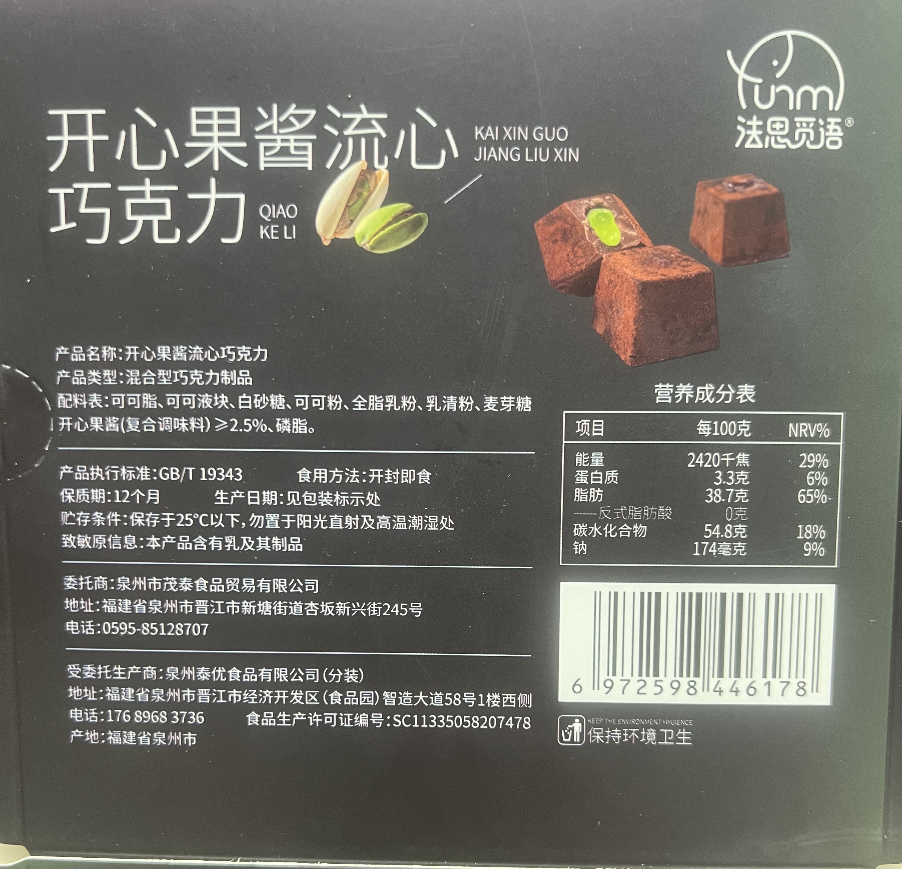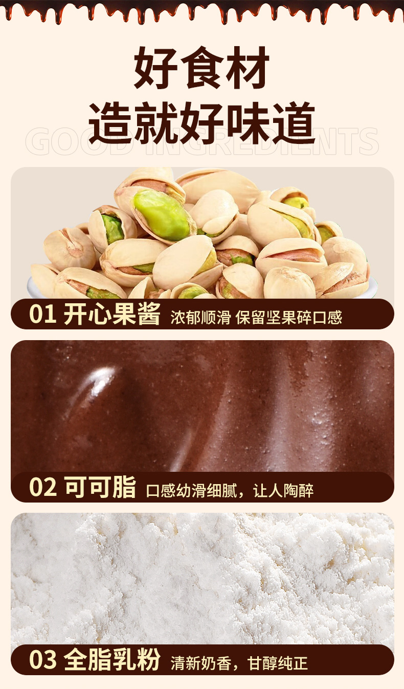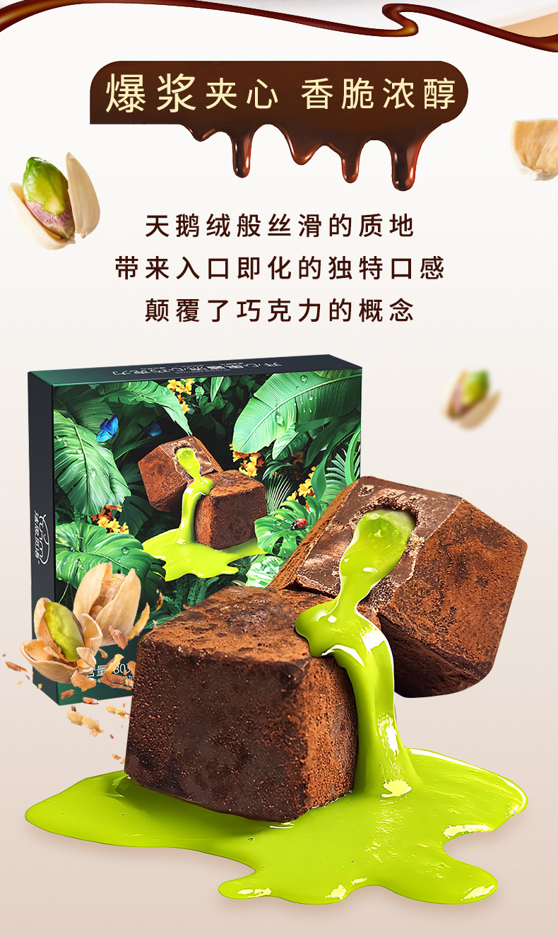 - ¥19.90开心果流心巧克力80g*3盒(分享装,75%人的选择)
