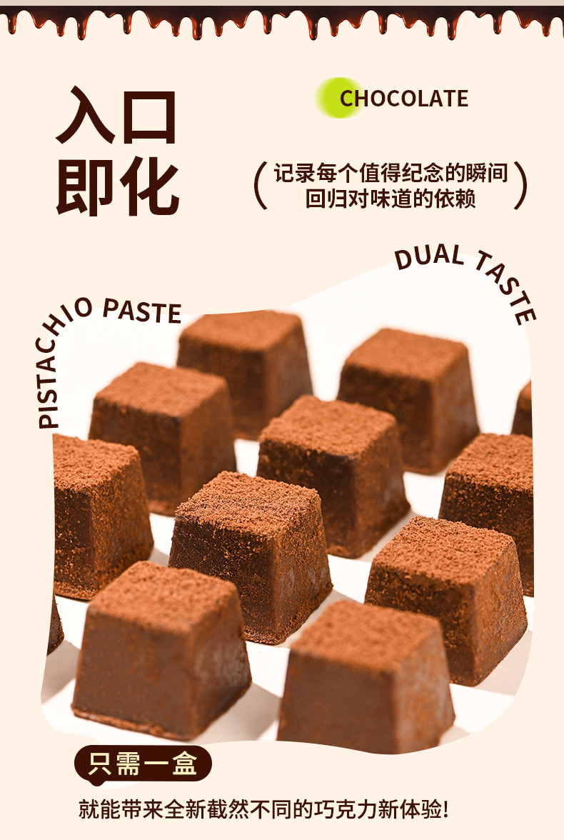 - ¥7.90开心果流心巧克力80g*1盒(尝鲜装)